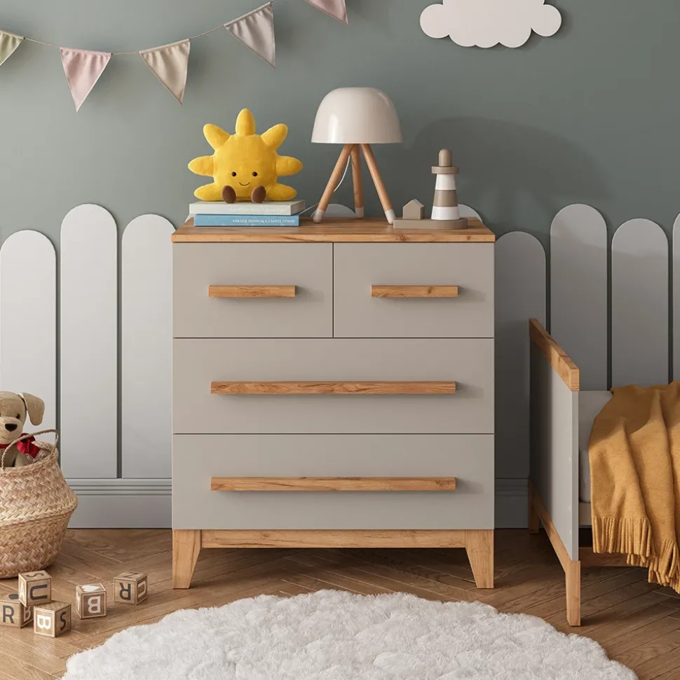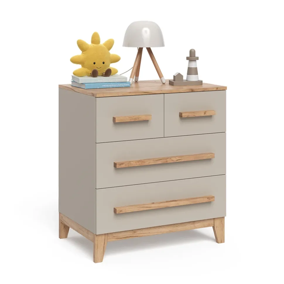 - Gestalten Sie Ihr Zuhause ordentlich und stilvoll mit diesem praktischen Kommodenschrank. Die zwei kleinen und zwei großen Schubladen bieten optimalen Stauraum für Hygieneartikel und Spielzeug.