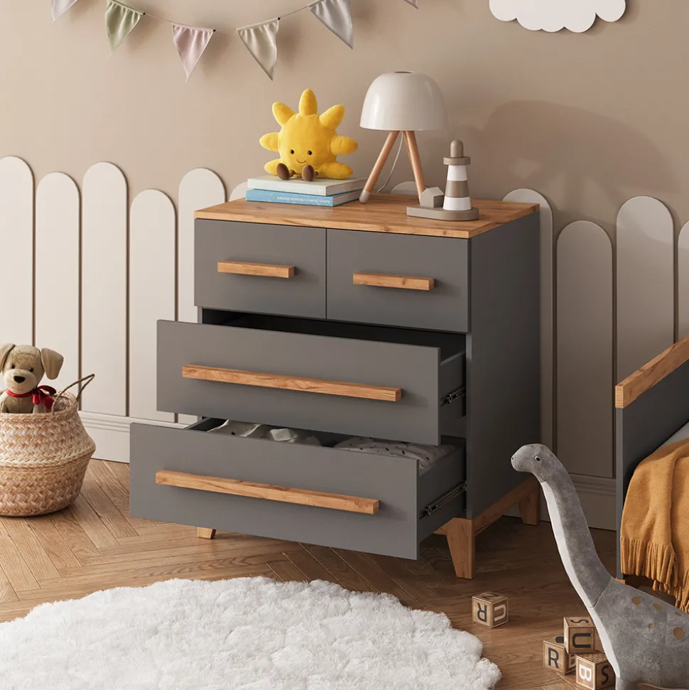 - Gestalten Sie Ihr Zuhause ordentlich und stilvoll mit diesem praktischen Kommodenschrank. Die zwei kleinen und zwei großen Schubladen bieten optimalen Stauraum für Hygieneartikel und Spielzeug.