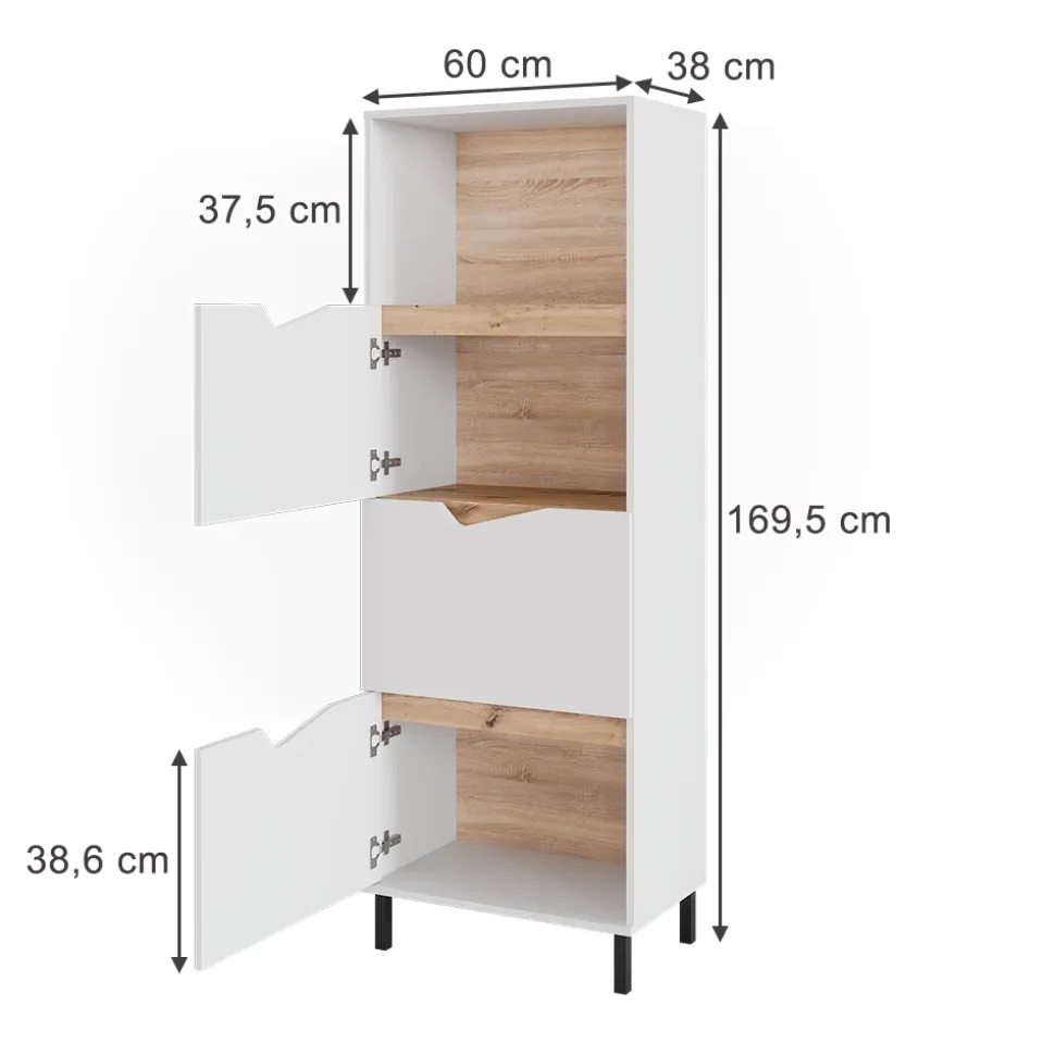 - MAßE: Sideboard mit 4 Fächern Tiefe: 38 cm, Breite: 60 cm, Höhe: 169,5 cm