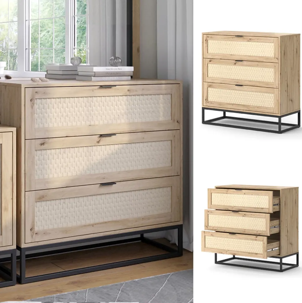 - Die Anrichte verfügt über drei geräumige Schubladen und bietet viel Stauraum. Sie ist Teil einer Serie, die weitere Optionen umfasst.