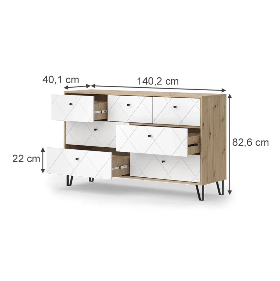 - Praktische Anrichte mit 7 Schubladen – viel Stauraum für Kleidung, Accessoires oder Unterlagen, sorgt für Ordnung und Struktur im Wohnbereich.