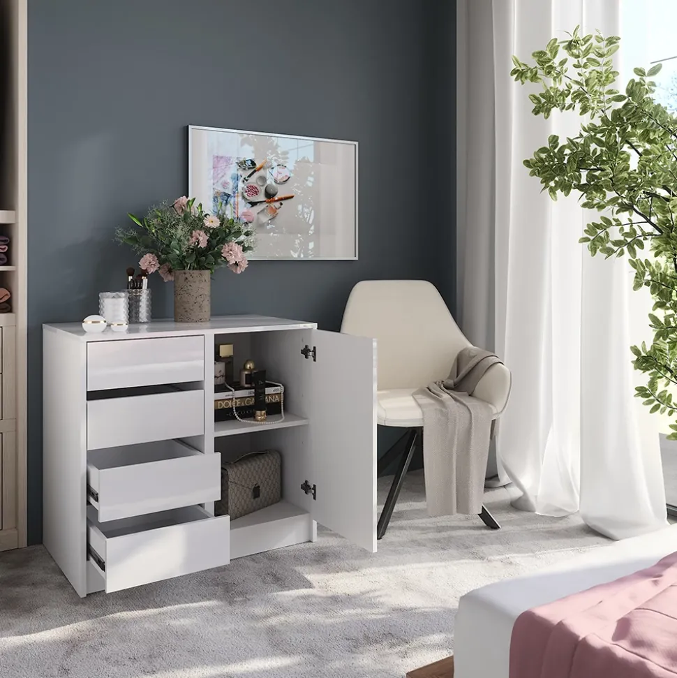 Die Kommode Sherry ist nicht nur ein praktisches Möbelstück für dein Zuhause, sondern auch ein echter Hingucker. Mit ihrem eleganten Design passt sie perfekt in jedes Schlafzimmer und bietet viel Stauraum für Kleidung, Bettwäsche und mehr. Du kannst sie als Sideboard, Kommodenschrank oder Anrichte nutzen – ganz nach deinen Bedürfnissen. Die hochwertige Verarbeitung und robuste Konstruktion garantieren eine lange Lebensdauer, sodass die Kommode Sherry ein treuer Begleiter für viele Jahre bleibt. Mach dein Schlafzimmer mit der Kommode Sherry zu einem gemütlichen und stilvollen Rückzugsort.