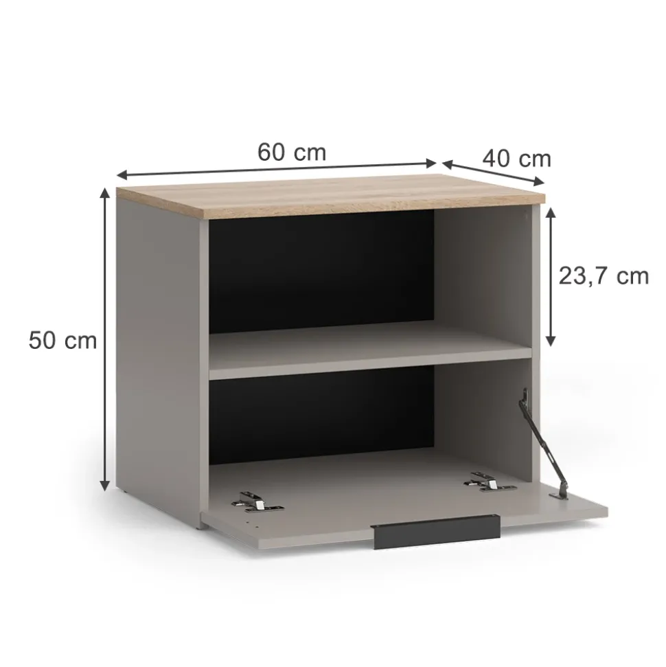 - MAßE: Sideboard mit Klappe hat folgende Maße: Breite: 60 cm, Höhe: 50 cm, Tiefe: 40 cm