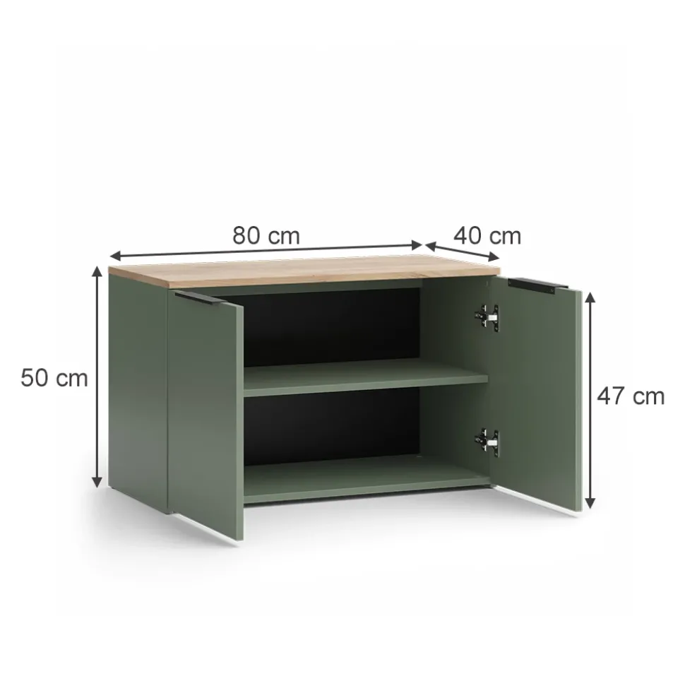 - MAßE: Die Kommode mit 2 Türen hat folgende Maße: 40 cm Tiefe, 80 cm Breite und 50 cm Höhe. Alle detaillierten Größen sind auf den Fotos angegeben.