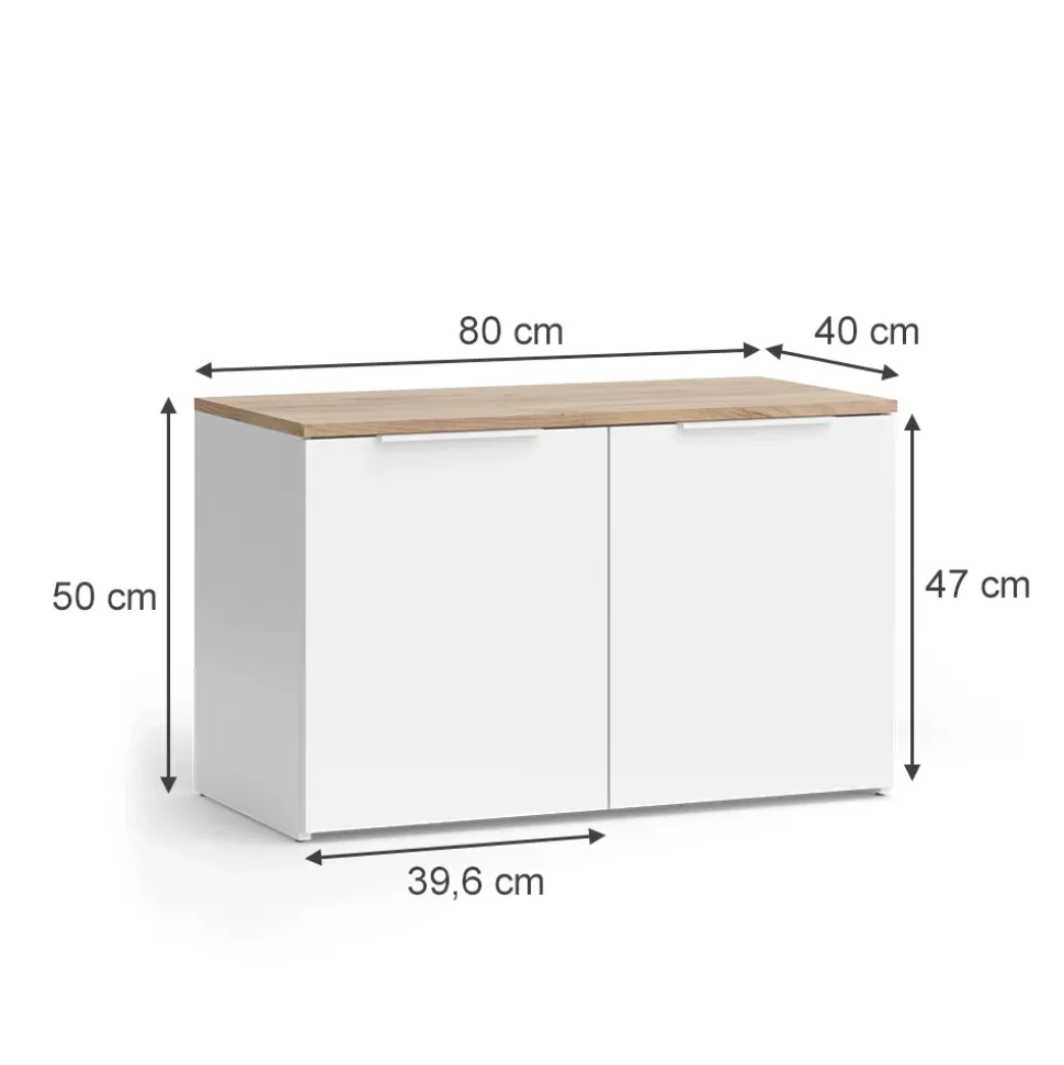 - MAßE: Die Kommode mit 2 Türen hat folgende Maße: 40 cm Tiefe, 80 cm Breite und 50 cm Höhe. Alle detaillierten Größen sind auf den Fotos angegeben.