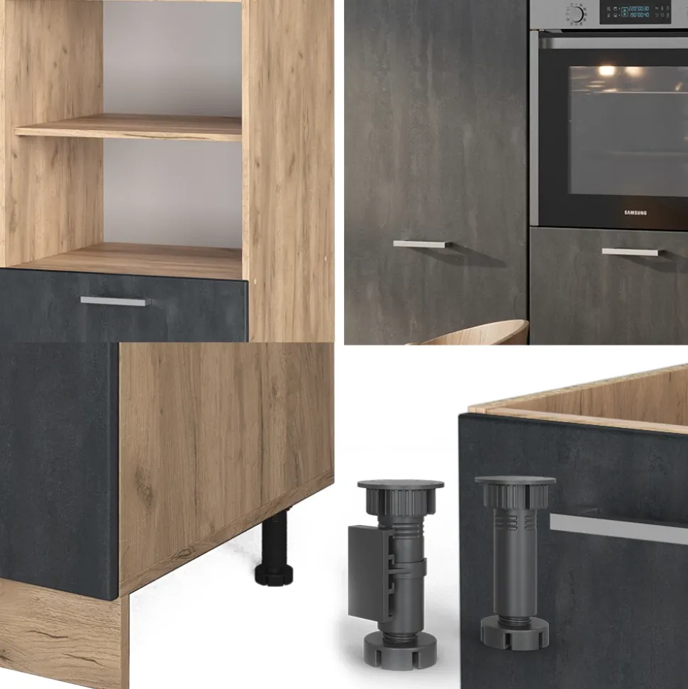- Der Küchenblock bietet Flexibilität mit umstellbaren Bestandsmodulen und optionalen Zusatzmodulen sowie höhenverstellbaren Füßen. Ideal für Räume mit begrenztem Platzangebot.