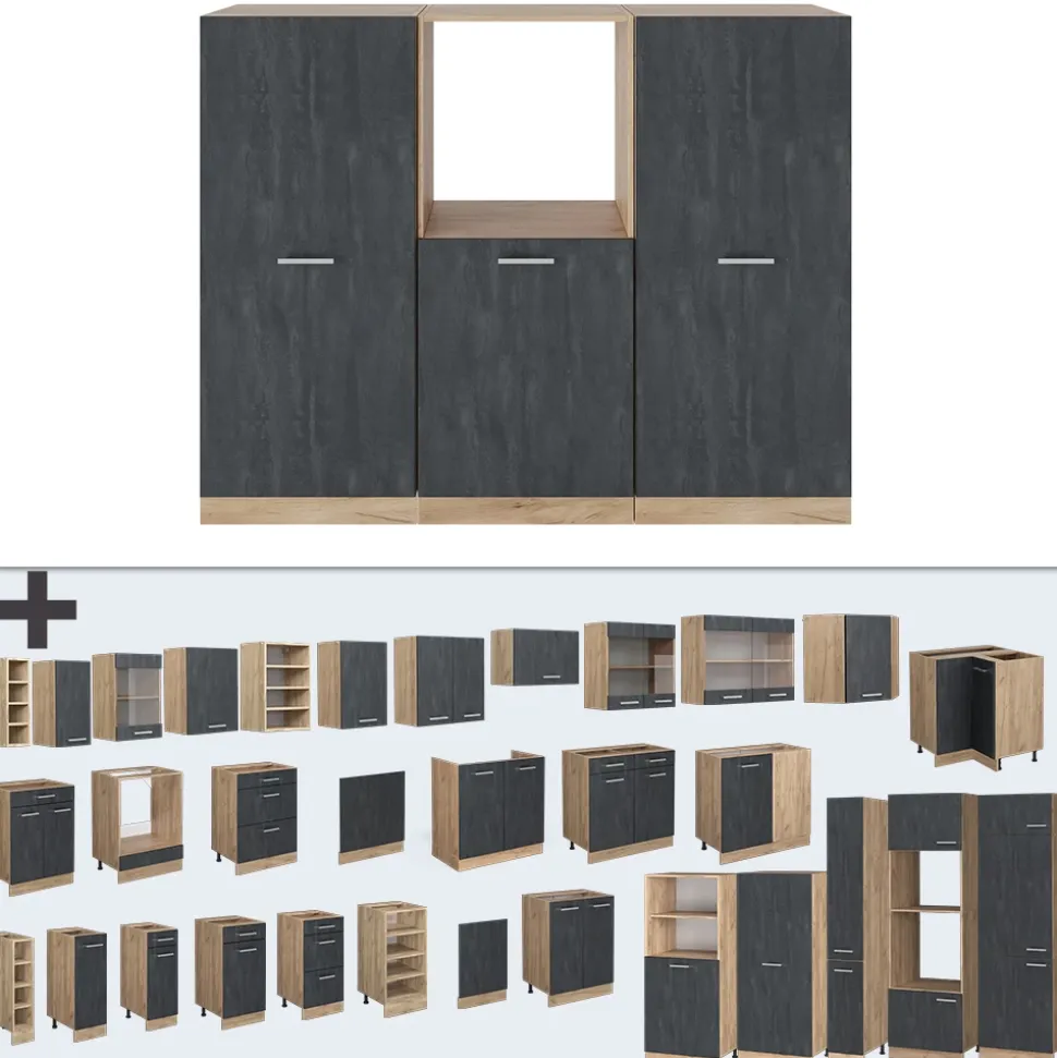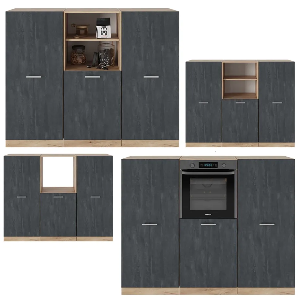 LIEFERUMFANG: Küchenblock ohne Arbeitsplatte, Montagematerial, Montageanleitung (Sofern nicht anders angegeben, gehören Elektrogeräte und Dekorationen nicht zum Lieferumfang)
