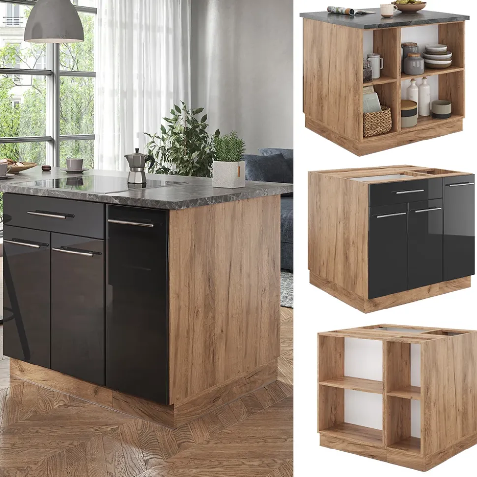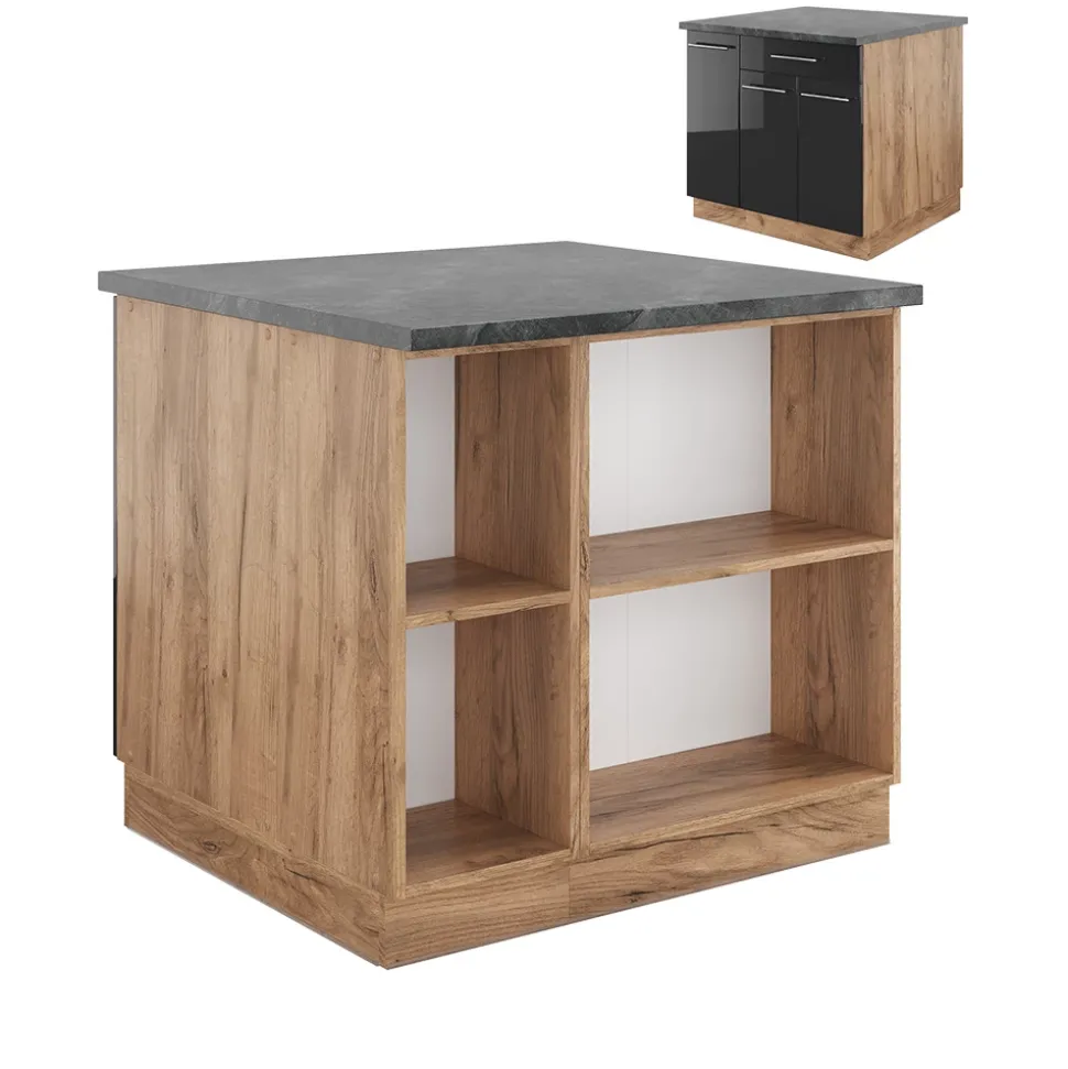 - MAßE: Der Insel-Küchenschrank hat eine Breite von 90 cm, eine Höhe von 82 cm und eine Tiefe von 82 cm. Alle detaillierten Größen sind auf den Fotos angegeben.