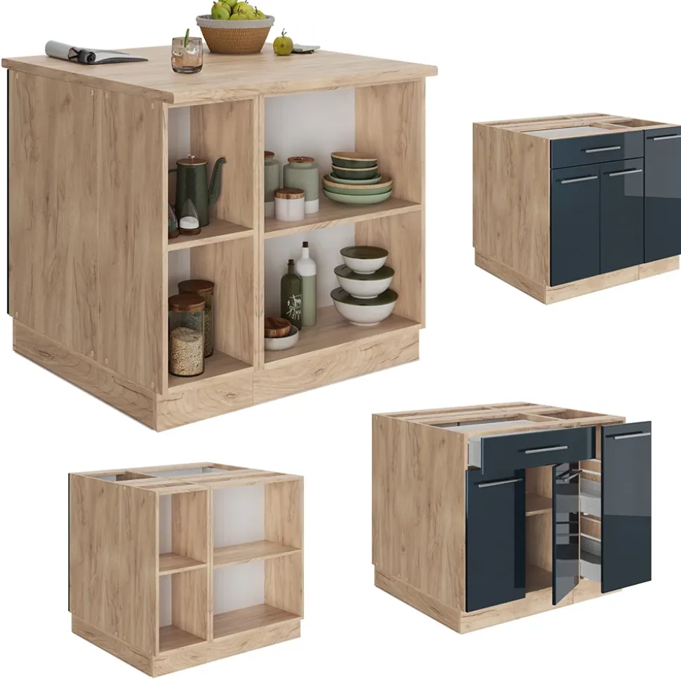 - MATERIAL: Die Kochinsel für die Küche besteht aus pflegeleichter, melaminharzbeschichteter 16 mm Spanplatte. Alle Fronten der Kücheneinheiten sind aus hochwertigem MDF hergestellt.