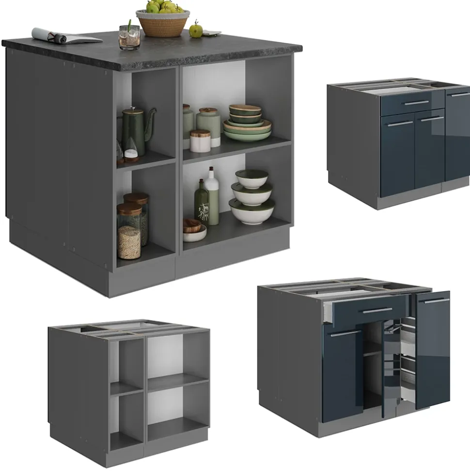 - Die Fame-Line – Kücheninsel bietet Premium-Qualität mit stabilen Metallgriffen, praktischen Soft-Closing-Scharnieren und Metall-Vollauszügen zu fairen Preisen.