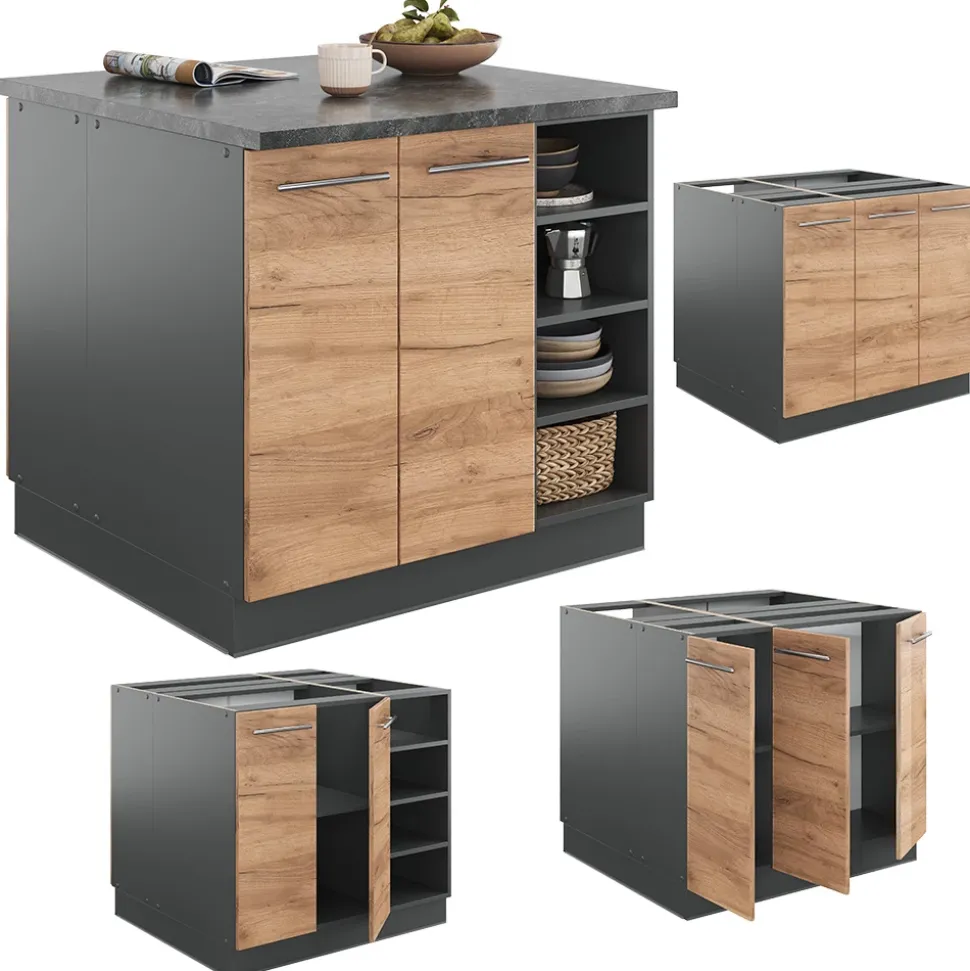 - MAßE: Der Insel-Küchenschrank hat eine Breite von 90 cm, eine Höhe von 82 cm und eine Tiefe von 82 cm. Alle detaillierten Größen sind auf den Fotos angegeben.
