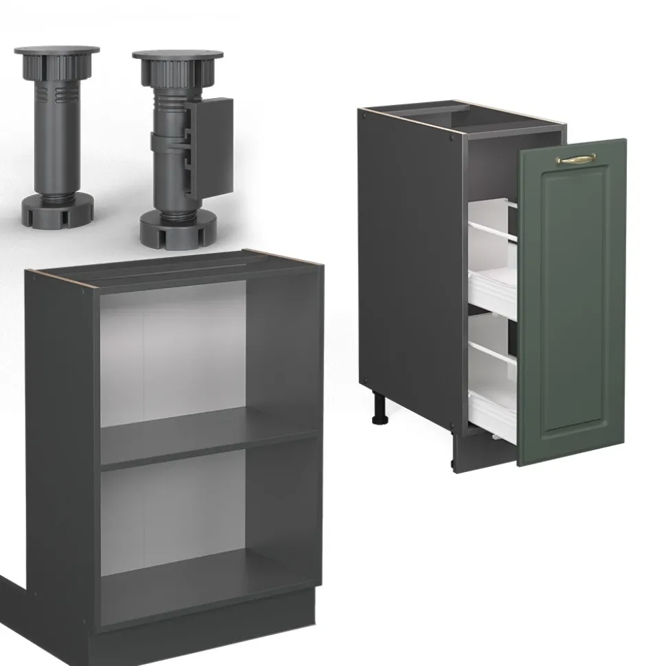 - MATERIAL: Die freistehenden Küchenmöbel besteht aus pflegeleichter Spanplatte 16 mm, mit einer Melaminharzbeschichtung. Alle Fronten der Kücheneinheiten sind aus hochwertigem MDF hergestellt