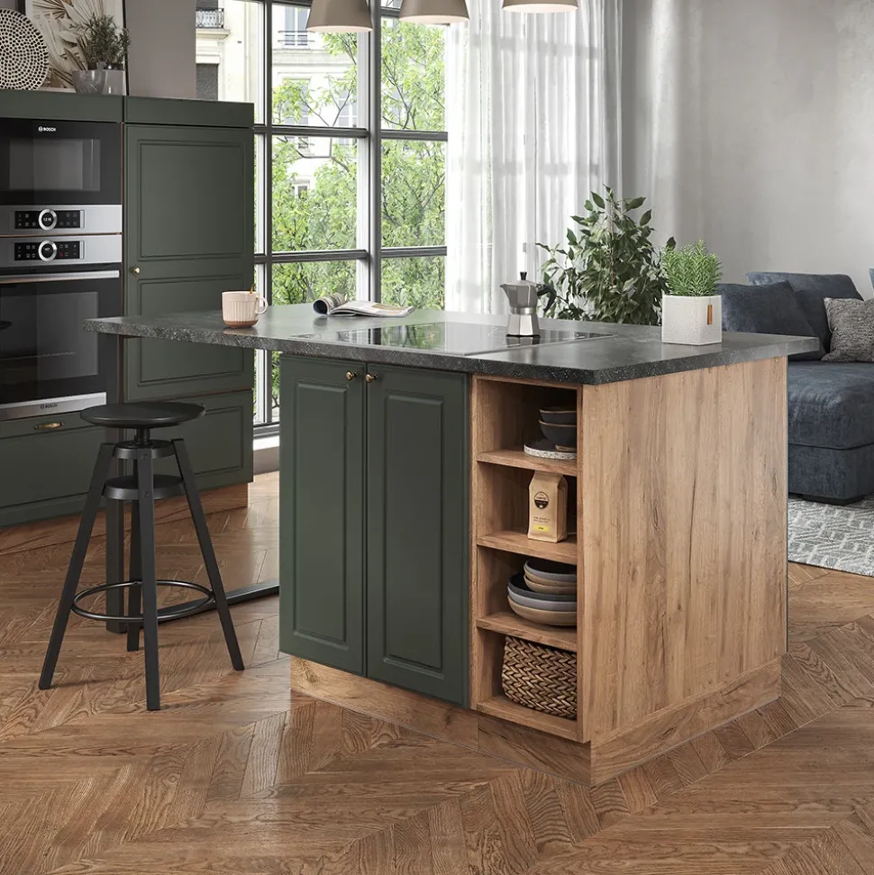 Mit der Fame-Line Kücheninsel setzen Sie ein Statement in Ihrer Küche. Der freistehende Küchenschrank bietet ausreichend Stauraum für alle Utensilien, die Sie zum Kochen benötigen, und macht Ihre Kochinsel zum Blickfang in jedem Raum. Die MDF-Fronten und Soft-Close-Scharniere sorgen dabei für eine hochwertige Optik und ein angenehmes Handling. Dabei ist die Konfiguration der Fame-Line Kücheninsel ganz nach Ihrem Geschmack anpassbar und lässt sich immer wieder neu zusammensetzen. Mit zusätzlichen Modulen können Sie Ihrer Kochinsel noch mehr Funktionen hinzufügen und Ihre Küche so zu einem Ort machen, an dem das Kochen zum Vergnügen wird.