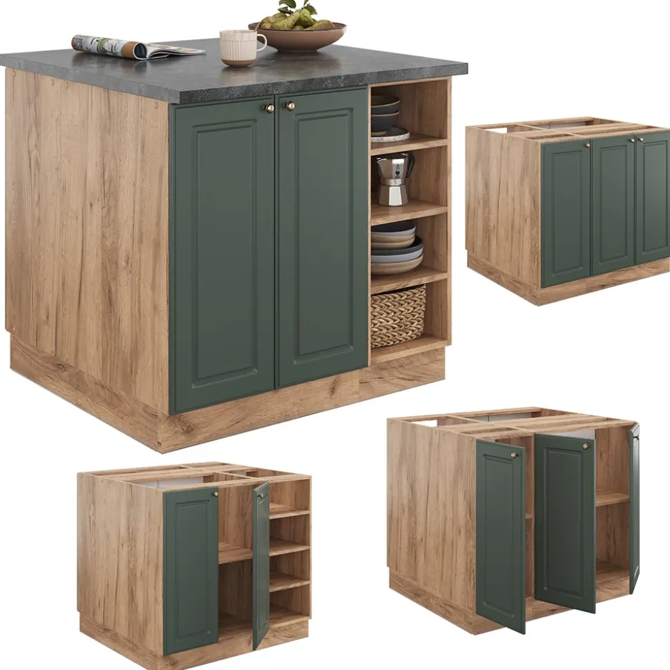 - MAßE: Der Insel-Küchenschrank hat eine Breite von 90 cm, eine Höhe von 82 cm und eine Tiefe von 82 cm. Alle detaillierten Größen sind auf den Fotos angegeben.
