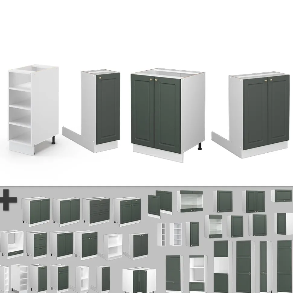 - MATERIAL: Die freistehenden Küchenmöbel besteht aus pflegeleichter Spanplatte 16 mm, mit einer Melaminharzbeschichtung. Alle Fronten der Kücheneinheiten sind aus hochwertigem MDF hergestellt