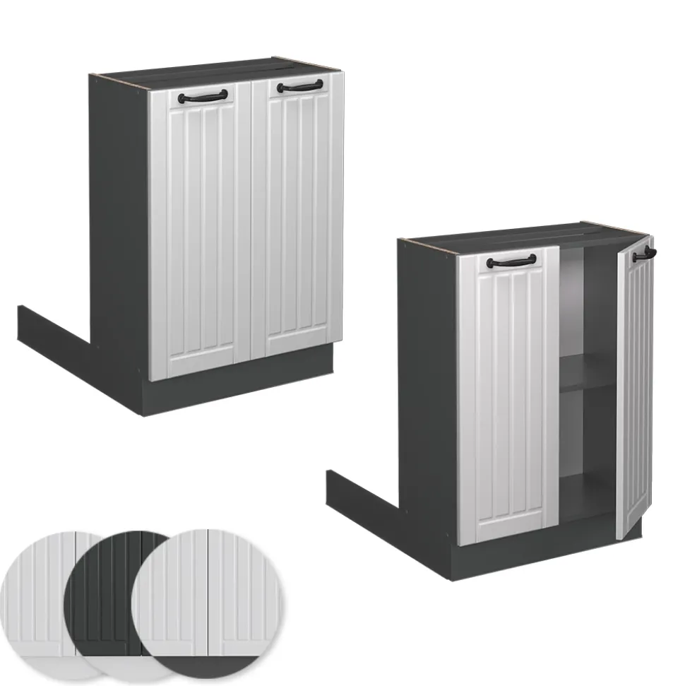 - MATERIAL: Die freistehenden Küchenmöbel besteht aus pflegeleichter Spanplatte 16 mm, mit einer Melaminharzbeschichtung. Die Fronten sind aus hochwertigem MDF hergestellt