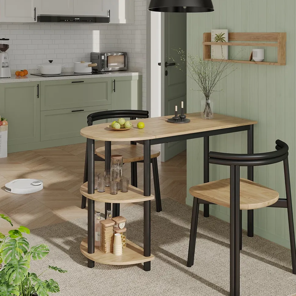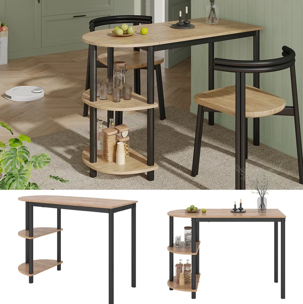 - MAßE: Der Esstisch für die Küche mit offenen Ablagen hat eine Tiefe von 50 cm, eine Breite von 110 cm und eine Höhe von 75,5 cm.
