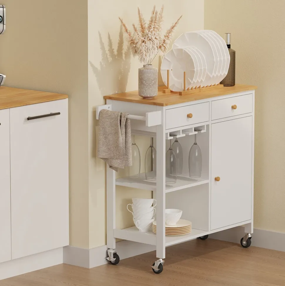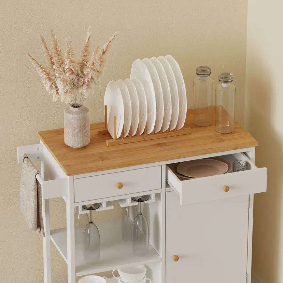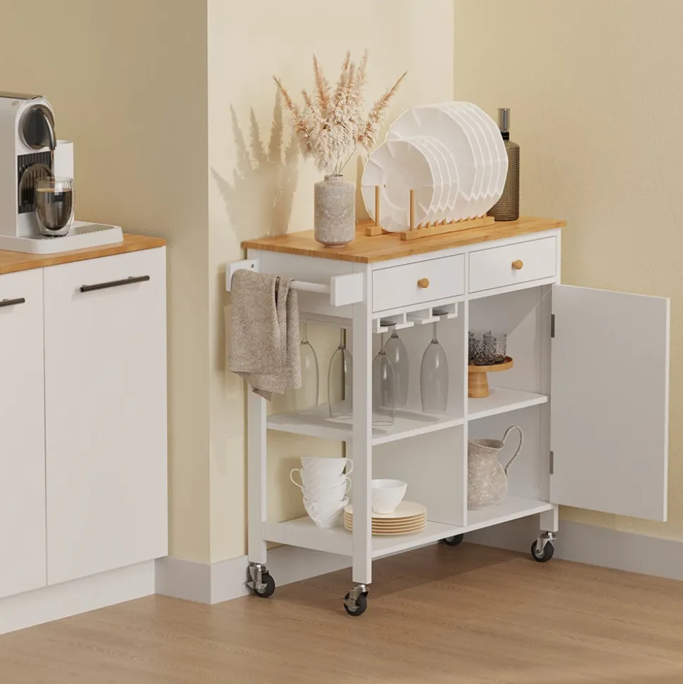 - Der Rollwagen für die Küche bietet nicht nur Platz für Weingläser, sondern kann auch im Wohnzimmer, Büro oder auf der Terrasse genutzt werden. Er ist vielseitig und platzsparend!