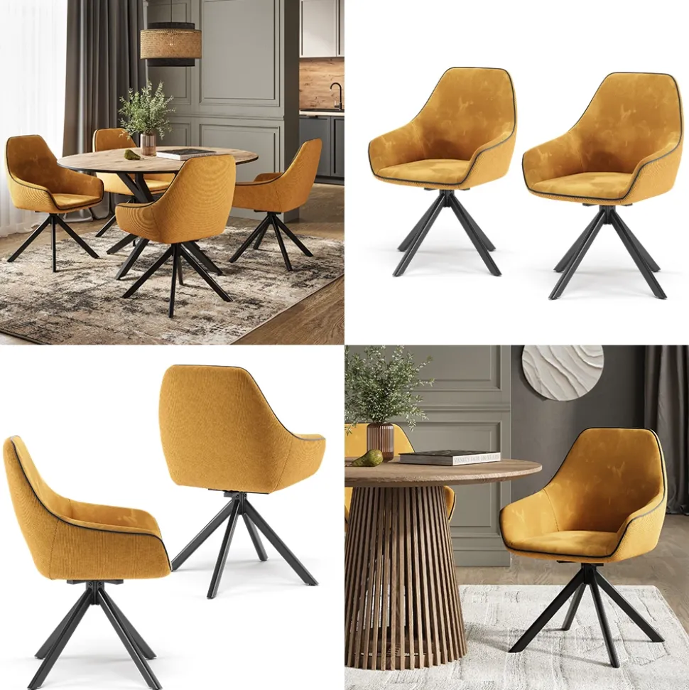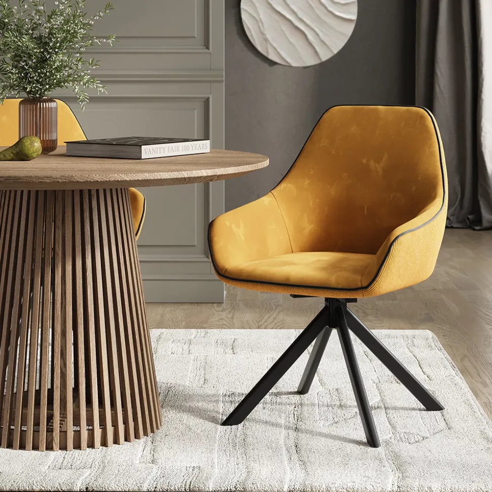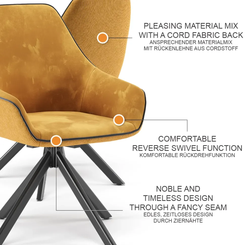 - MATERIAL: Der Drehstuhl besteht aus einem Materialmix aus Cord und Samt, welcher pflegeleicht ist. Das Stahlrohr ist pulverbeschichtet für eine lange Haltbarkeit.