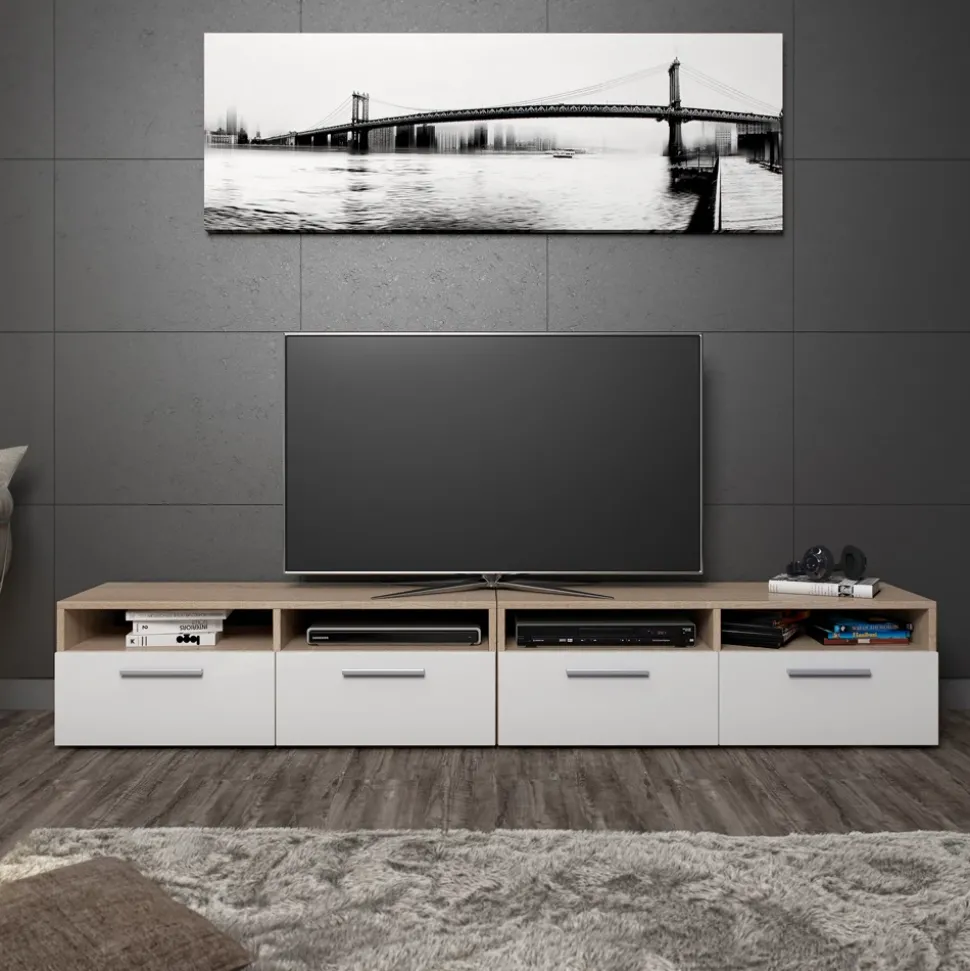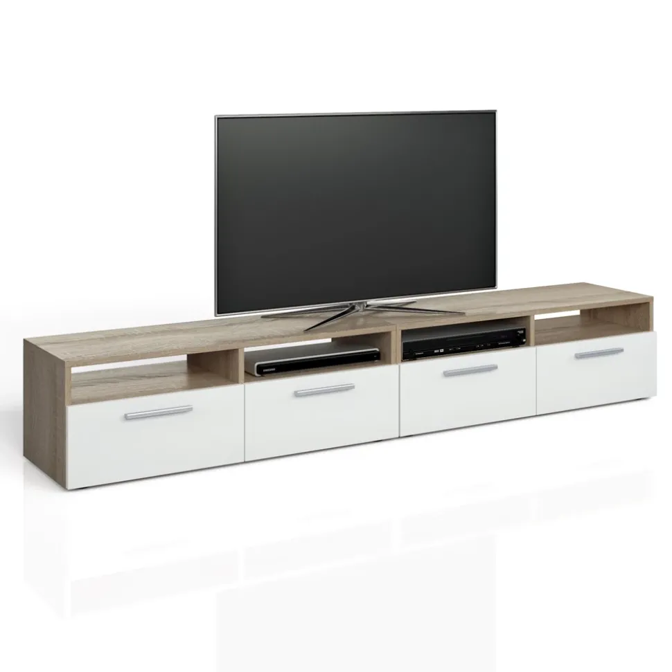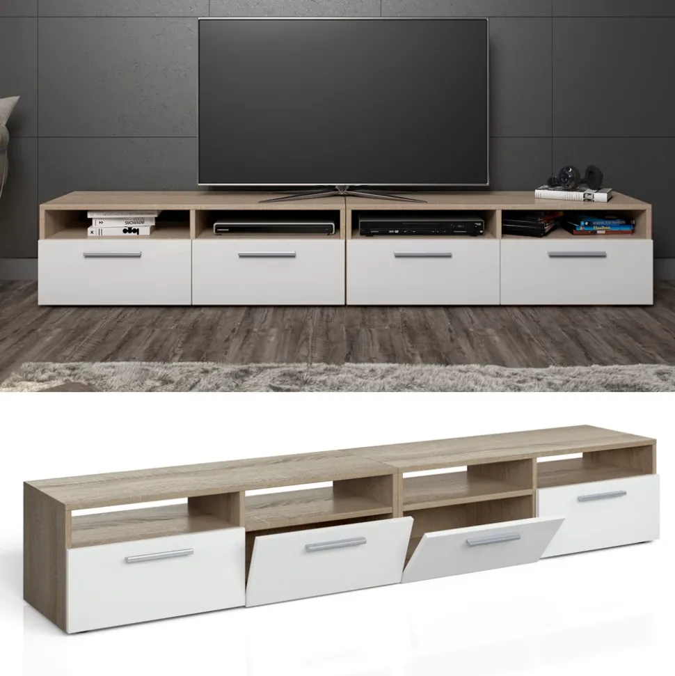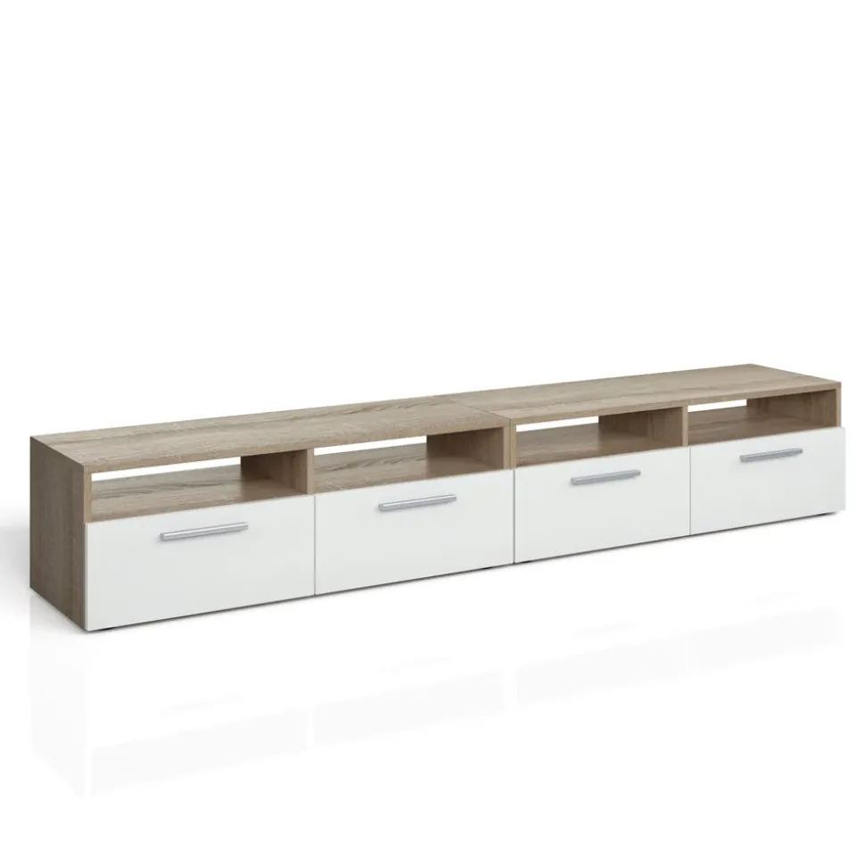 - Der Fernsehtisch bietet mit vier offenen Fächern und vier geschlossenen Ablagefächern reichlich Stauraum für TV-Zubehör und andere Gegenstände.
