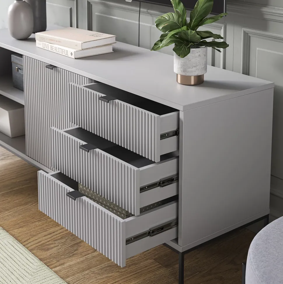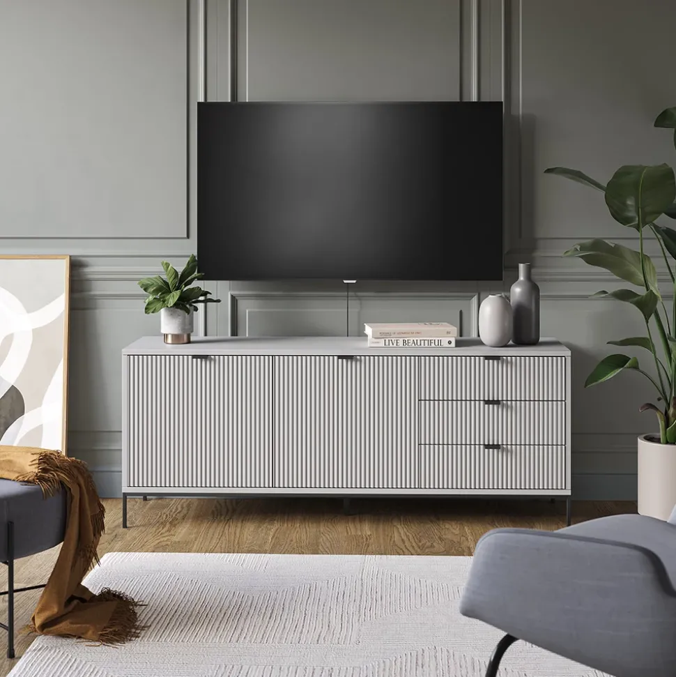 - MATERIAL: Das TV-Board besteht aus pflegeleichter Spanplatte 16 mm, mit einer Melaminharzbeschichtung