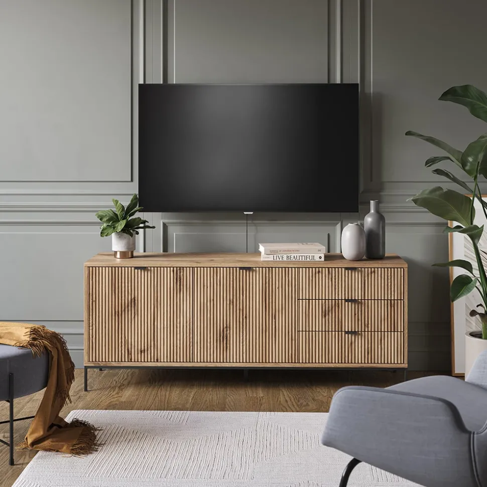 - Der Fernsehschrank Eliza ist eine gute Entscheidung für jeden, der ein stilvolles Aussehen und eine universelle Passform für jede Wohnung sucht.