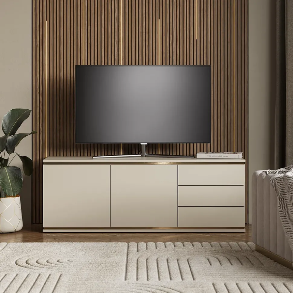- Sein funktionelles Design macht diesen Fernsehschrank zu einem praktischen und stilvollen Möbelstück für Ihr Zuhause. Organisieren Sie mühelos all Ihre Multimedia-Geräte und Zubehörteile.