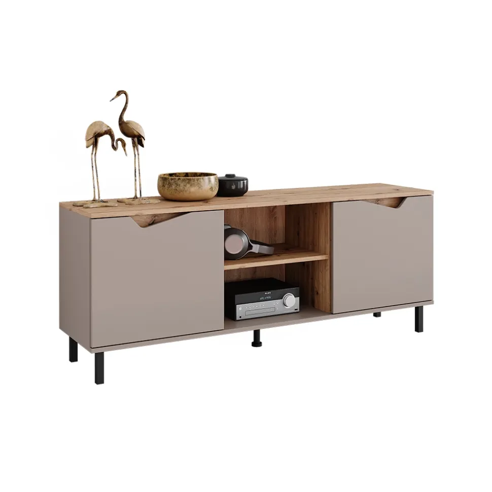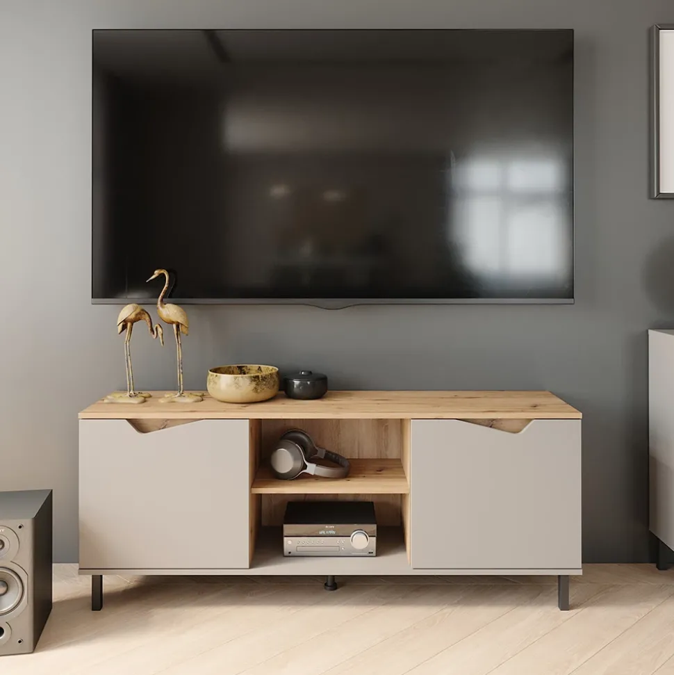 - Mit zwei offenen Fächern und zwei Türen hält der Fernsehtisch alles für Geräte und Zubehör gut organisiert bereit.