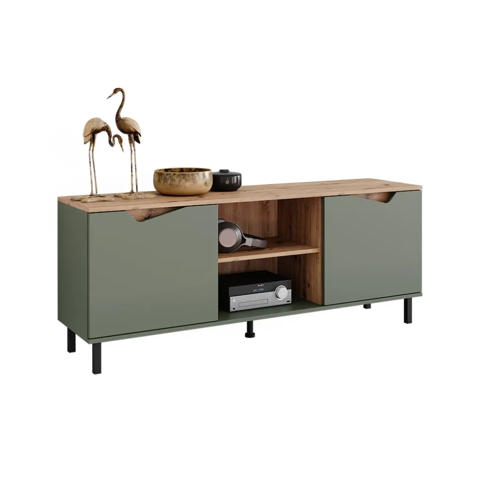 Das Lowboard Marelle ist nicht nur ein einfacher TV-Schrank, sondern ein echter Blickfang für Ihr Wohnzimmer. Mit seinem funktionellen Design bietet es nicht nur genügend Stauraum für all Ihre Multimedia-Geräte, sondern punktet auch mit 2 offenen Fächern, 2 geschlossenen Fächern und 2 Türen für eine stilvolle Aufbewahrung. Das Lowboard kann perfekt mit anderen Möbelstücken kombiniert werden, um Ihren Raum nach Ihren Wünschen zu gestalten. Erleben Sie mit dem Lowboard Marelle eine einzigartige Mischung aus Eleganz und Funktionalität in Ihrem Zuhause.