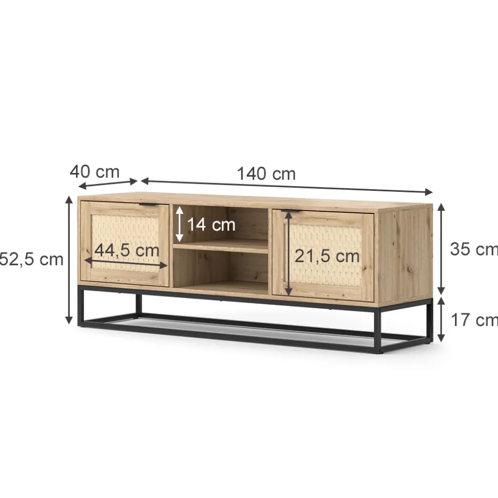 - MAßE: Der TV-Schrank hat eine Breite von 140 cm, eine Höhe von 52,5 cm und eine Tiefe von 40 cm. Alle detaillierten Größen sind auf den Fotos angegeben.