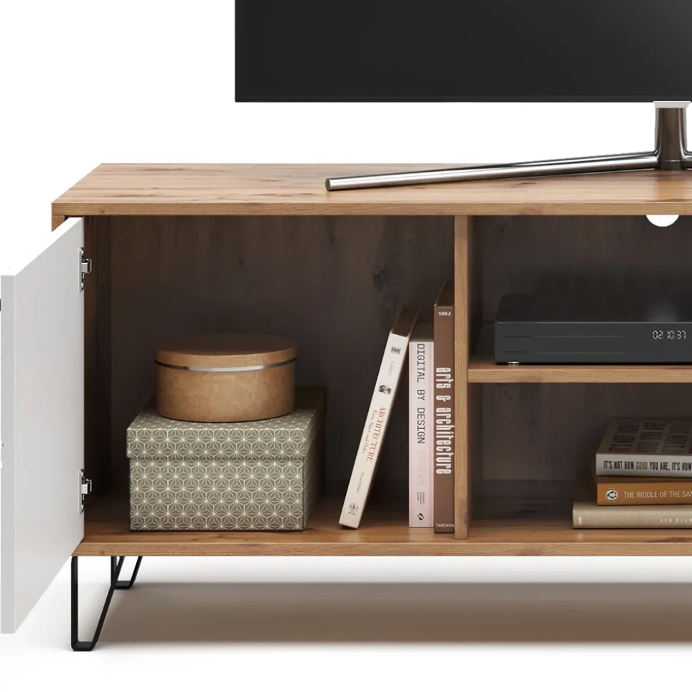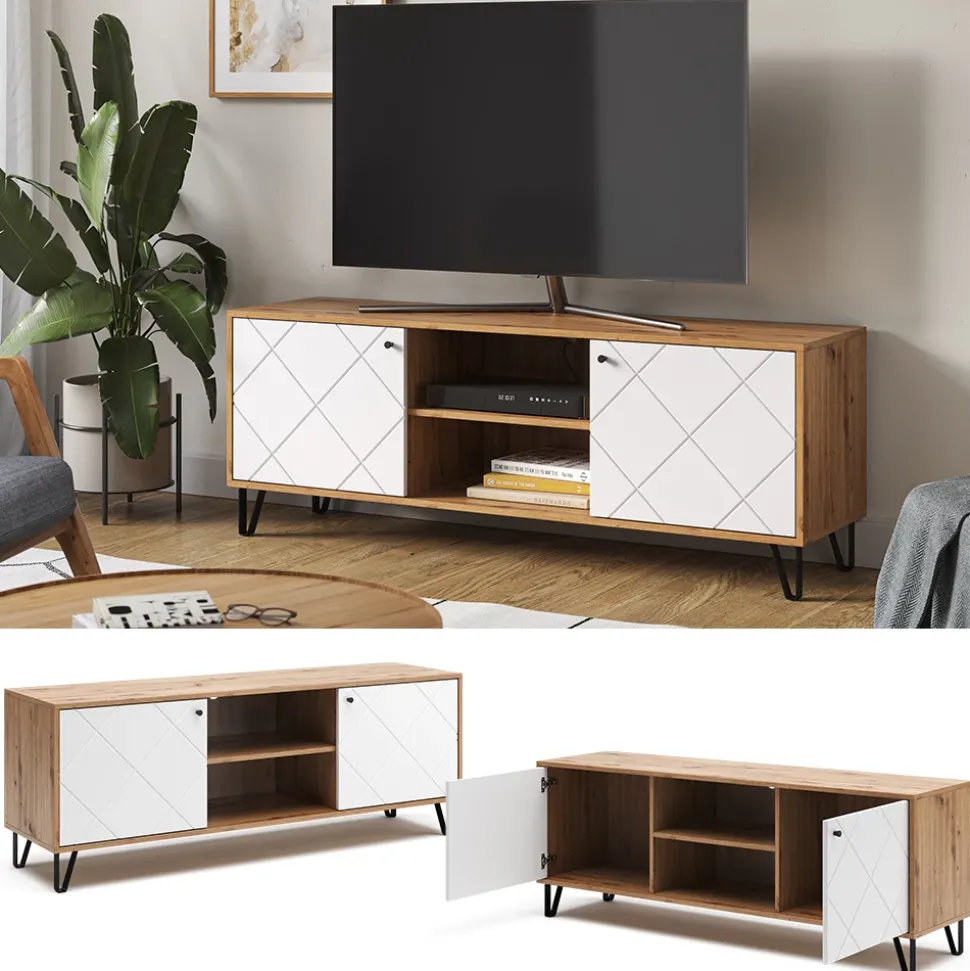 - MATERIAL: Das TV-Board besteht aus pflegeleichter Spanplatte 16 mm, mit einer Melaminharzbeschichtung