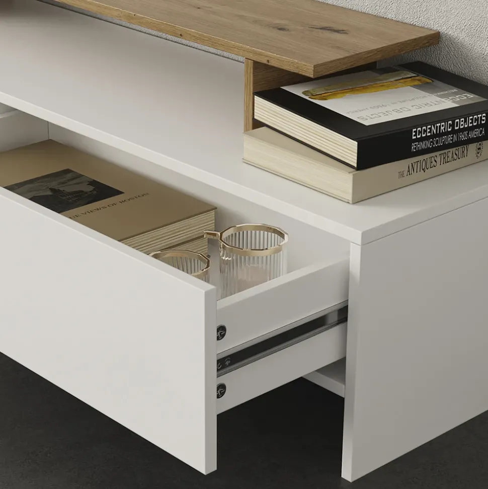 Das TV-Board Tavora kombiniert modernes Design mit natürlichem Charme. Mit klaren Linien und einer harmonischen Farbgebung bietet es stilvollen Stauraum für dein Wohnzimmer.