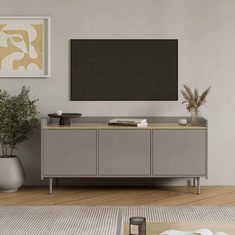 - Der geräumige Fernsehtisch bietet viel Stauraum und ist äußerst praktisch für die Aufbewahrung von Multimedia-Geräten und Zubehör. Ein idealer Begleiter für ein ordentliches Wohnzimmer-Setup.