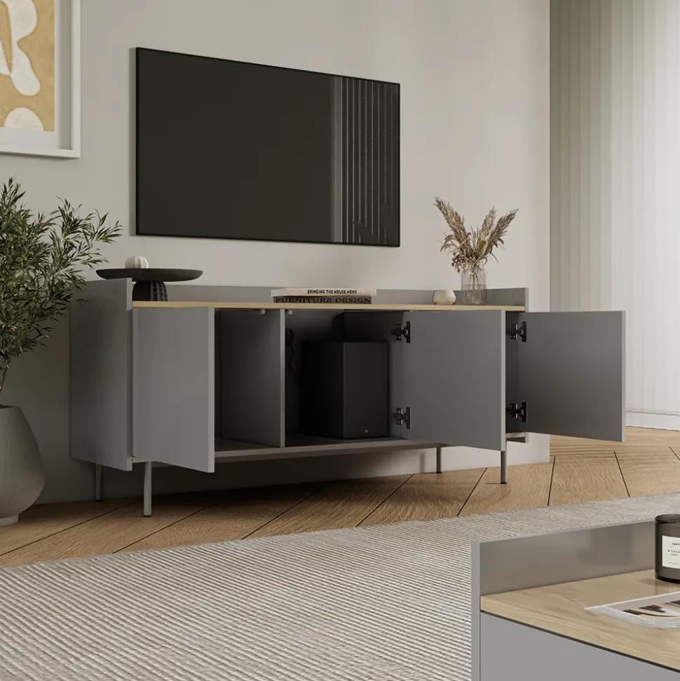 Die Möbelserie Velina überzeugt durch ihr modernes und funktionales Design. Das TV-Lowboard bietet großzügigen Stauraum und setzt stilvolle Akzente im Wohnbereich.