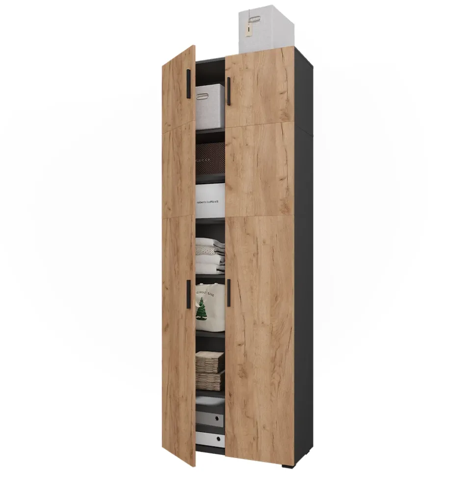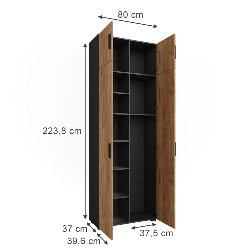 - MAßE: Der Universalschrank hat folgende Abmessungen: Höhe: 223,8 cm, Breite: 80 cm, Tiefe: 37 cm. Die detaillierten Größen sind auf den Fotos angegeben.