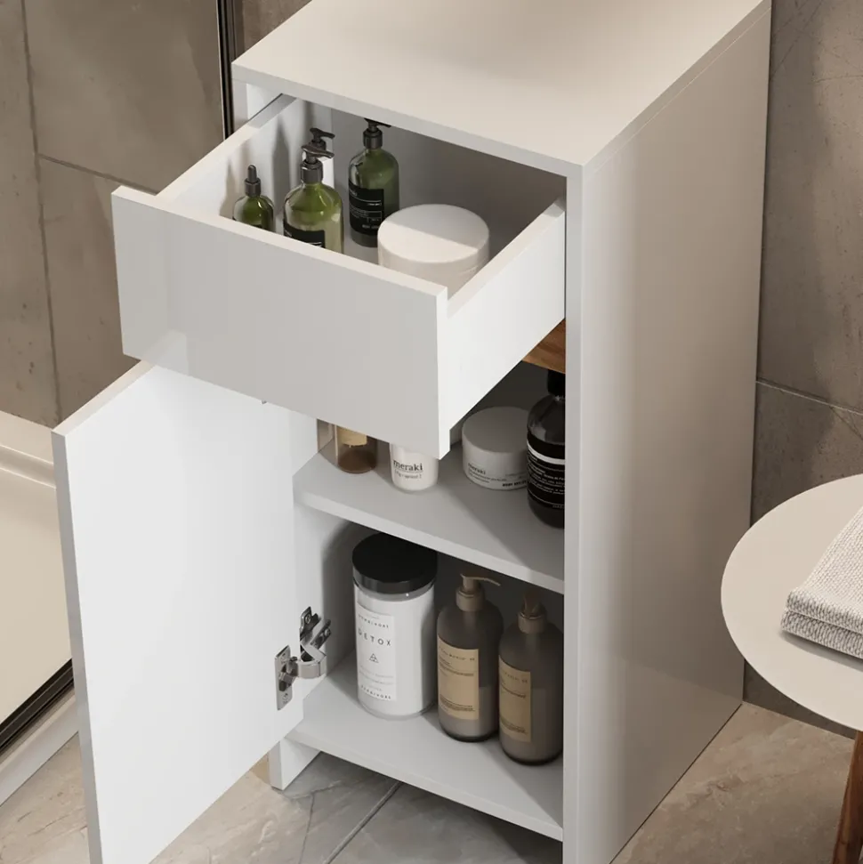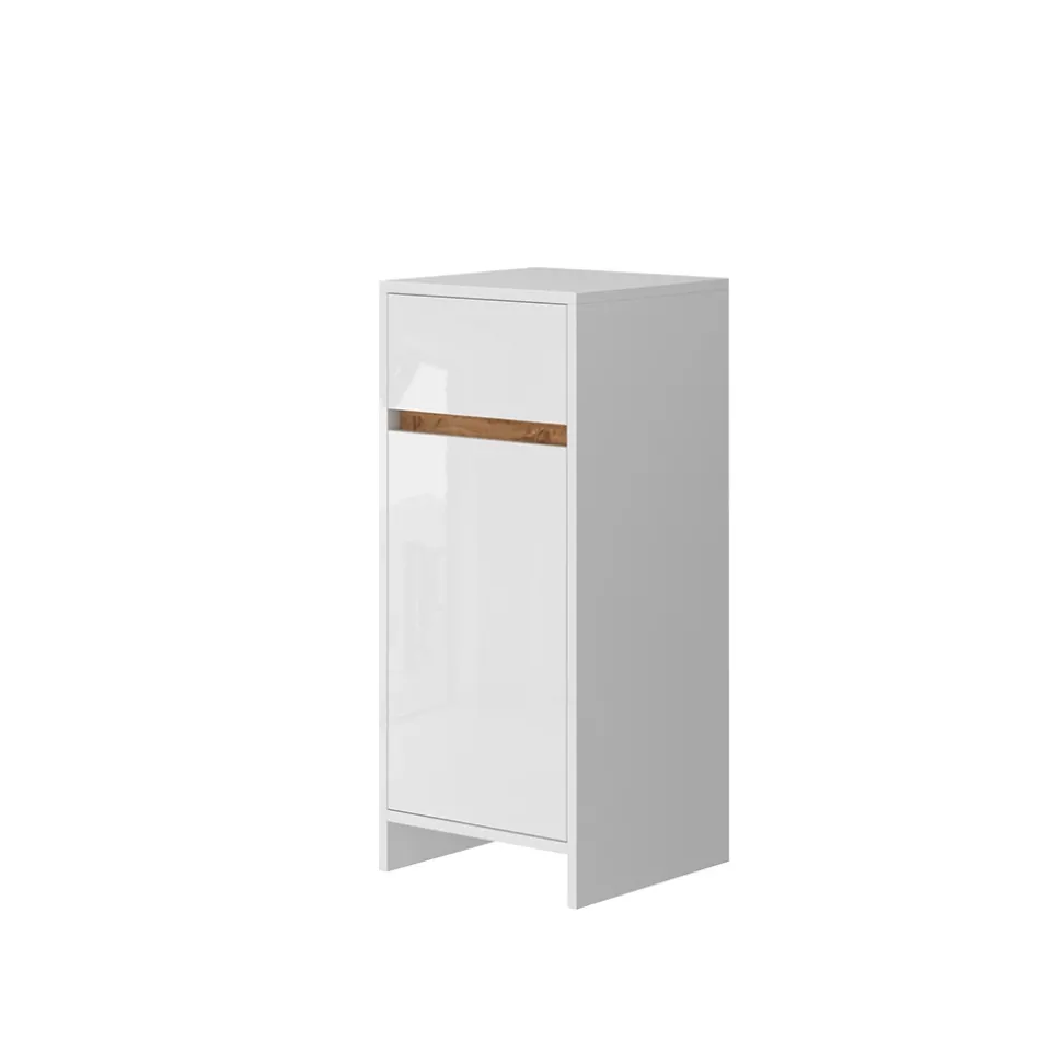 - Dieses Badmöbelstück bietet, mit je einer Flügeltür und ausziehbaren Schublade, platzsparenden Stauraum. Ideal für Ihr Bad!