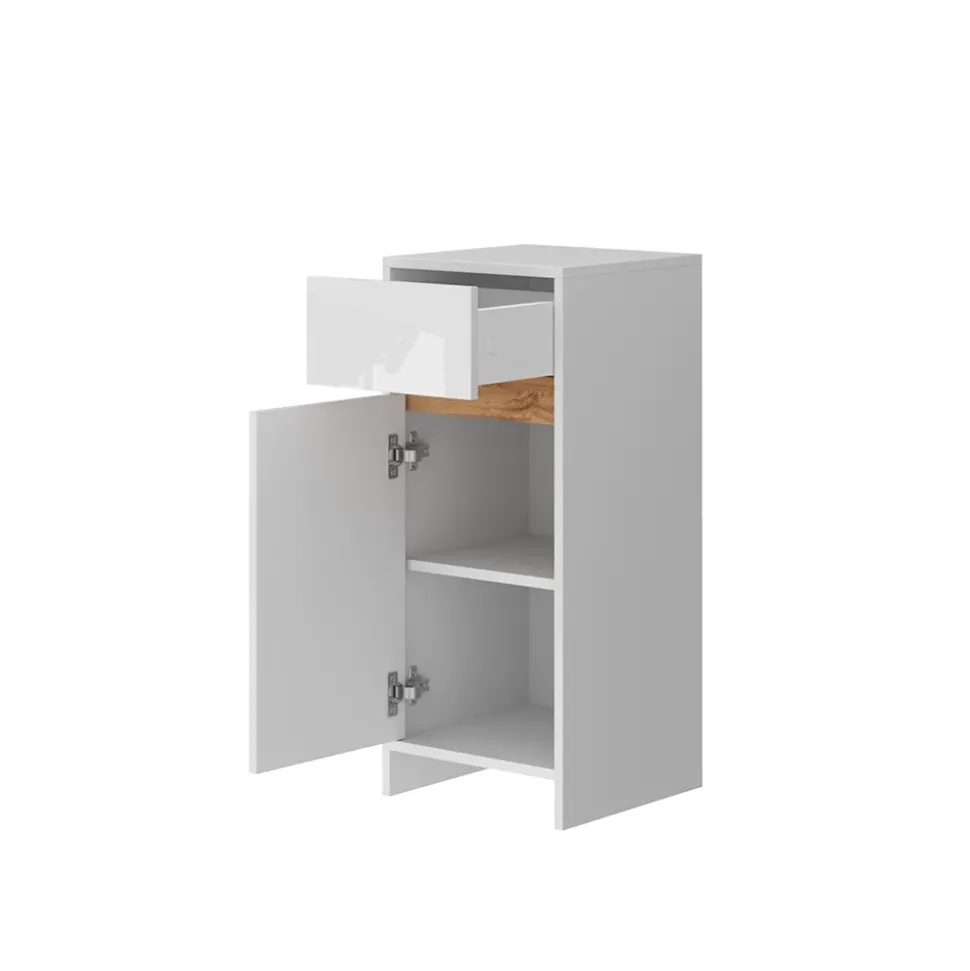 - MATERIAL: Der Midischrank besteht aus pflegeleichter, melaminharzbeschichteter 16 mm Spanplatte