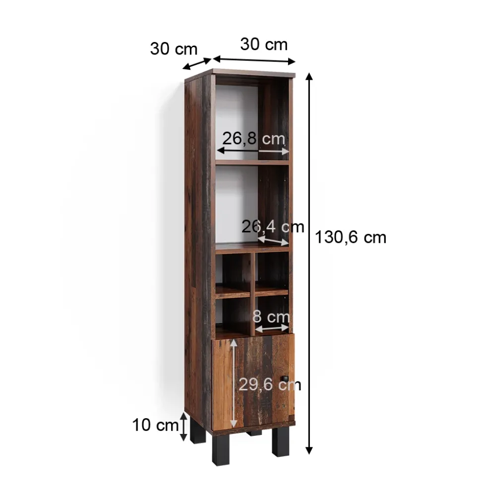 - MAßE: Das Badezimmermöbel hat eine Breite von 30 cm, eine Höhe von 130,6 cm und eine Tiefe von 30 cm. Alle detaillierten Größen sind auf den Fotos angegeben.