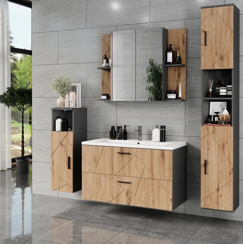 - Die Badmöbel überzeugen durch modernes Design, hohe Qualität und Funktionalität. Sie bieten großzügigen Stauraum und machen Ihr Badezimmer zu einem echten Hingucker.