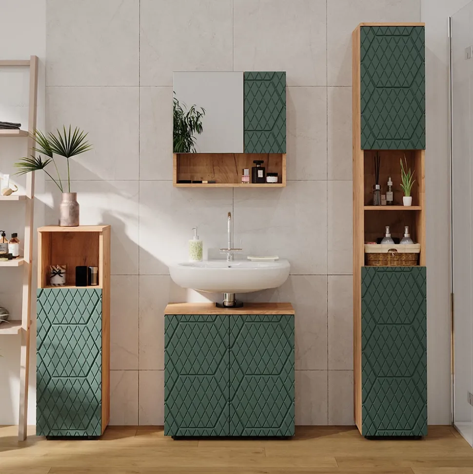 Der Midischrank Irma ist das perfekte Badezimmermöbelstück für all jene, die sowohl auf innovatives Design als auch auf viel Stauraum Wert legen. Dank der offenen und geschlossenen Fächer wird Irma diesem Anspruch problemlos gerecht. Zudem ist der Schrank kompatibel mit anderen Möbelstücken der Irma-Kollektion. Aber auch optisch zieht dieser Schrank alle Blicke auf sich. Seine klare Linienführung und das außergewöhnliche Design setzen Akzente im Badezimmer und schaffen eine einzigartige Atmosphäre. Gönnen Sie sich diesen Schrank und erleben Sie, wie er Ihr Badezimmer auf ein neues Level hebt!