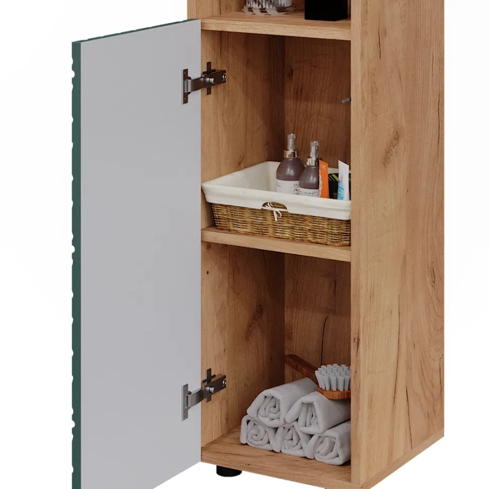 - Das Badmöbelstück hat offene und geschlossene Ablageflächen, sodass reichlich Stauraum für Badutensilien geschaffen wird.