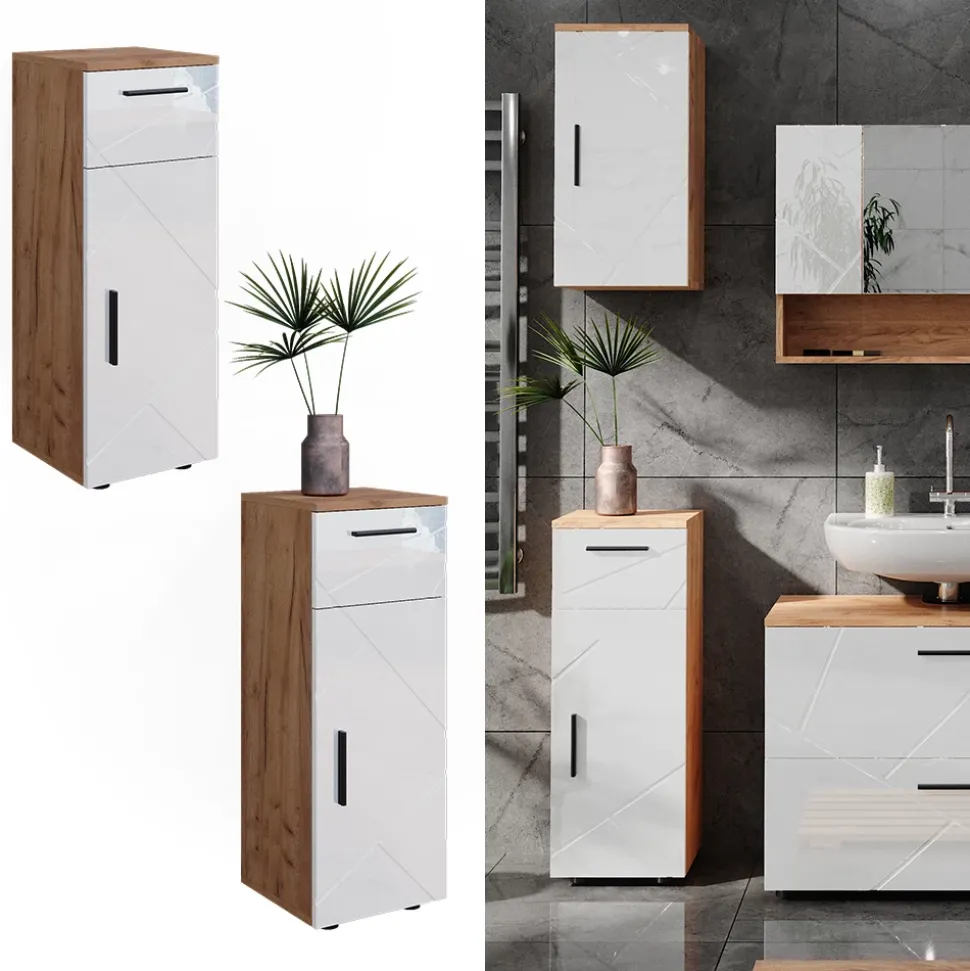 - MAßE: Das Badezimmermöbel hat eine Breite von 30 cm, eine Höhe von 81 cm und eine Tiefe von 30 cm. Alle detaillierten Größen sind auf den Fotos angegeben.