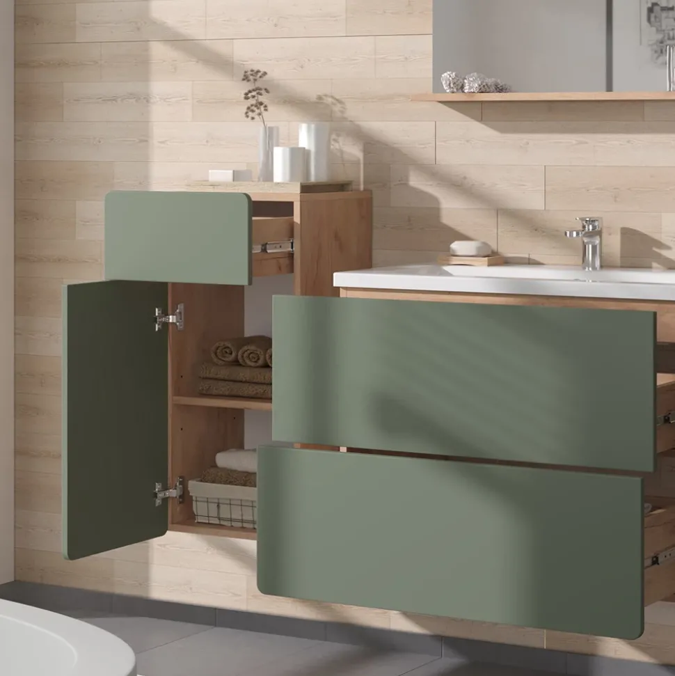 Der Midischrank Izan ist ein wahrer Hingucker im Badezimmer. Das klassische Design ist zeitlos und fügt sich perfekt in jedes Badezimmer ein. Der Schrank bietet mit einer Schublade, einem Einlegeboden und einer Tür reichlich Stauraum für all Ihre Badezimmerutensilien. Die Kombination aus offenen und geschlossenen Fächern gibt Ihnen die Möglichkeit, Ihre persönlichen Dinge privat zu halten und dennoch griffbereit zu haben. Der Midischrank Izan ist kompatibel mit anderen Produkten der Kollektion, sodass Sie Ihr Badezimmer ganzheitlich gestalten können. Erleben Sie eine neue Form von Ordnung und machen Sie Ihr Badezimmer zu Ihrem persönlichen Rückzugsort.