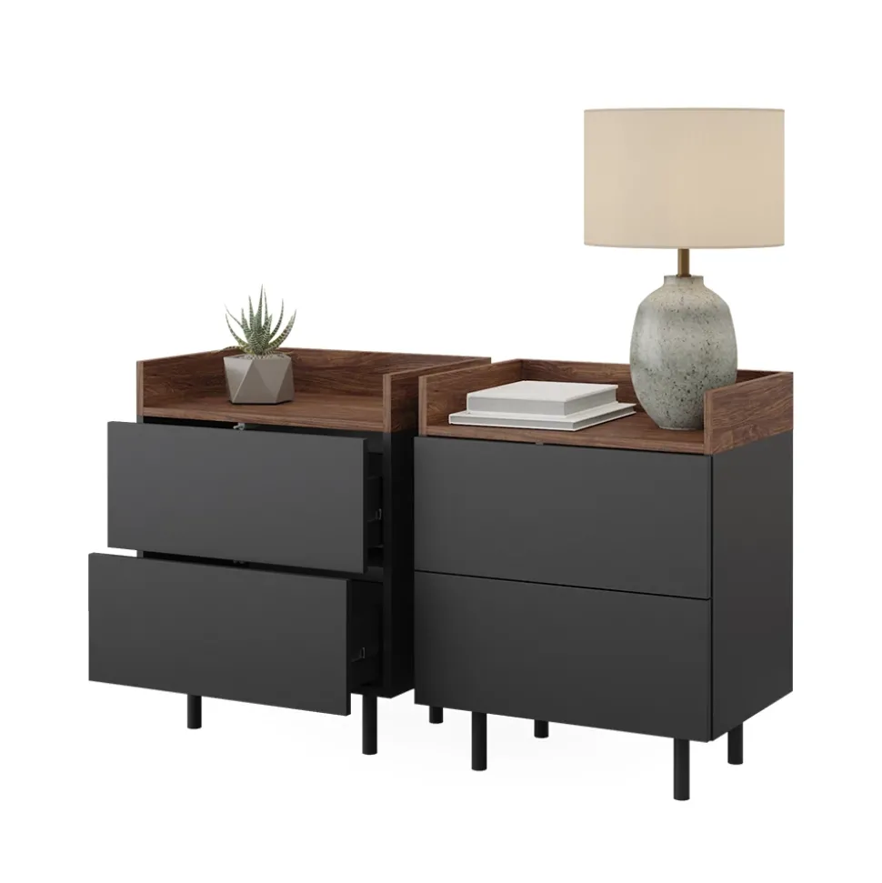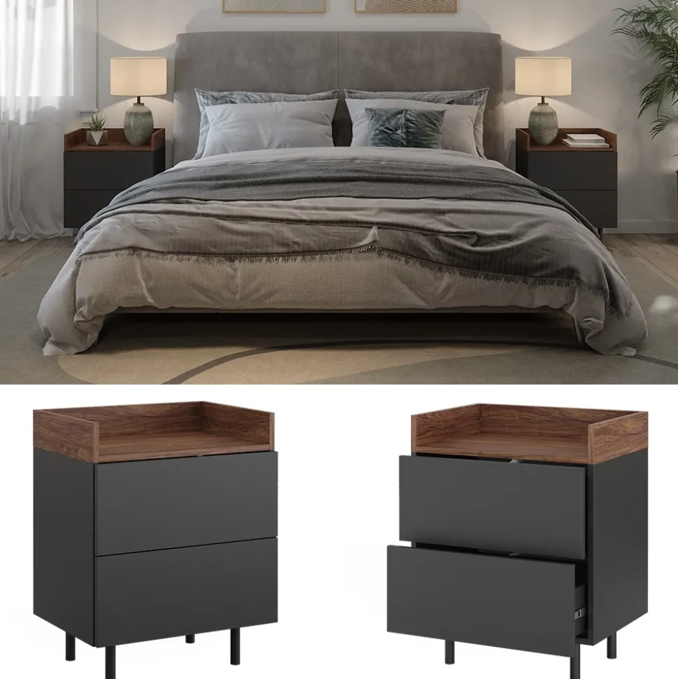 - Entdecken Sie das elegante Vicco Nachttisch 2er-Set Anika für Schlaf- oder Kinderzimmer. Mit Ablagefläche, Schubfächern und stilvollem Anthrazit-Walnussbraun-Design.