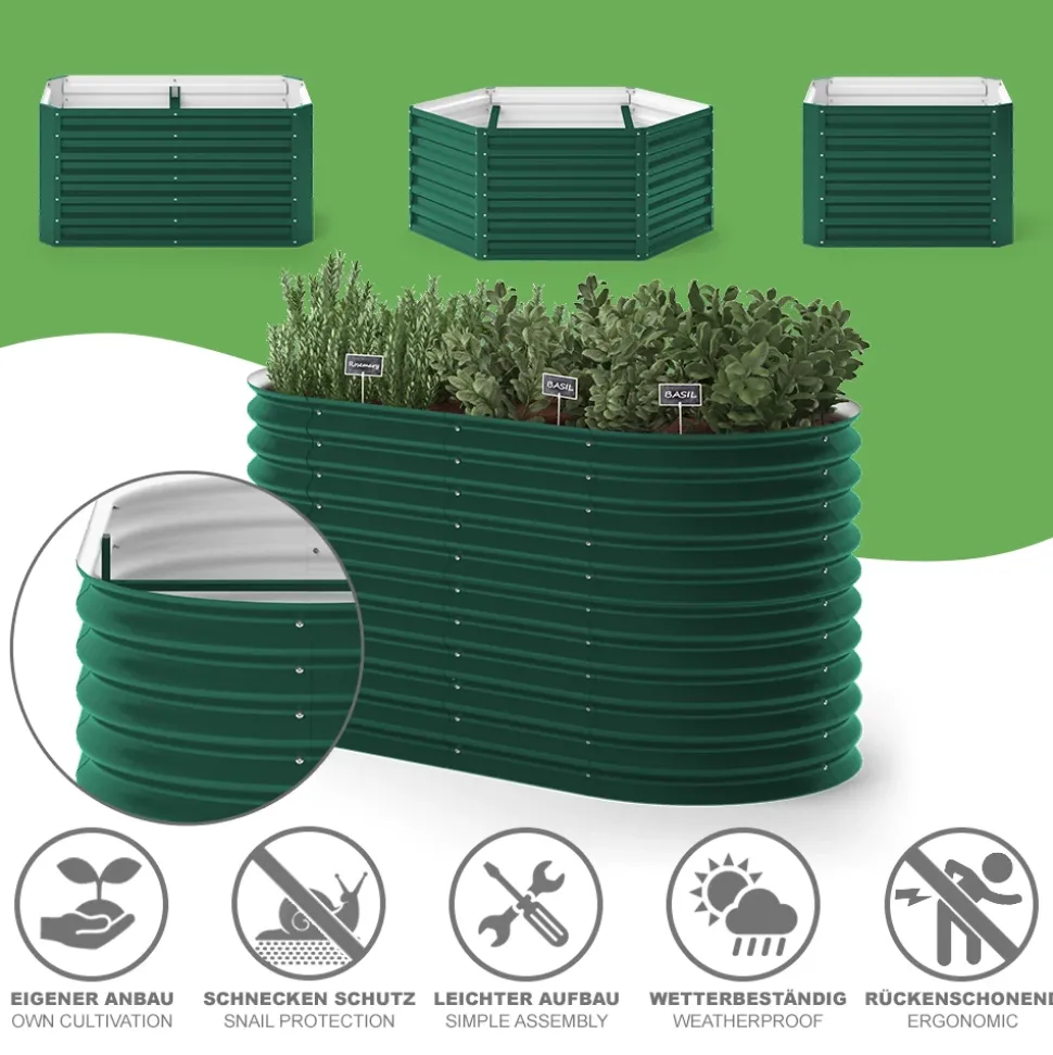 - MATERIAL: Das Gartenbeet besteht aus verzinktem Stahl, ein Material, das für seine außerordentliche Widerstandsfähigkeit und Langlebigkeit bekannt ist