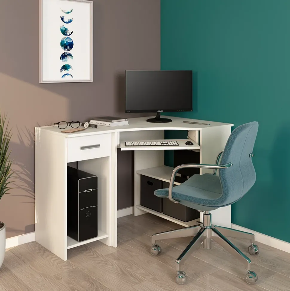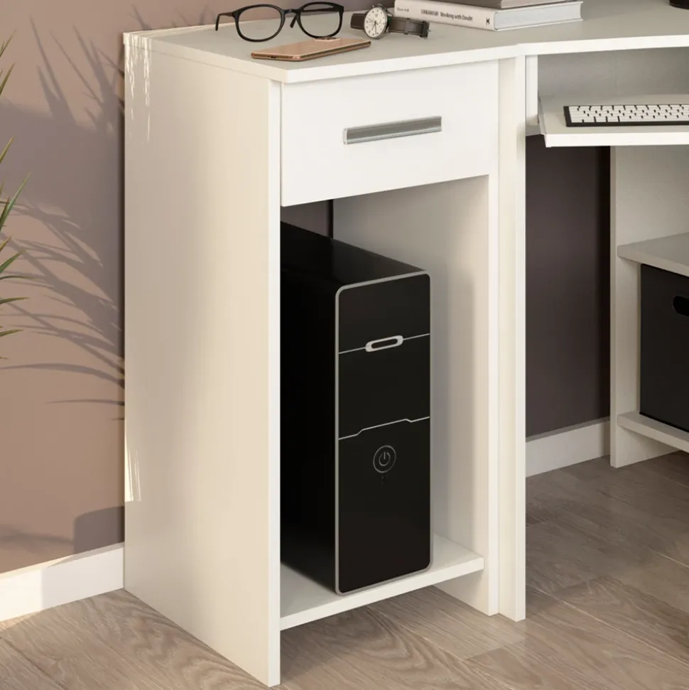 - Das PC Regal bietet eine ausziehbare Schublade und Platz für den Rechner. Durch das passende Design passt es ideal zu Schreibtischen und Computertischen.