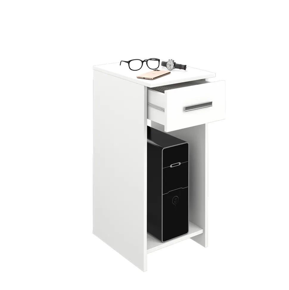 Der PC Schrank Odin ist die perfekte Ergänzung für jedes Büro oder Home-Office. Dank des minimalistischen Designs fügt er sich nahtlos in jede Einrichtung ein und bietet dennoch ausreichend Platz für Ihren PC, sowie eine ausziehbare Schublade für zusätzliche Stauraummöglichkeiten. Der Schrank kann sowohl als Unterschrank für den Schreibtisch als auch als eigenständiger Computerschrank verwendet werden und passt perfekt zu Schreibtischen und Computertischen. Das Modell ist Teil der Odin-Reihe, die weitere Varianten anbietet, um eine vollständige Büroausstattung zu ermöglichen. Gönnen Sie sich dieses stylische und praktische Möbelstück und erleben Sie, wie es Ihnen dabei hilft, Ihre Arbeit zu organisieren!