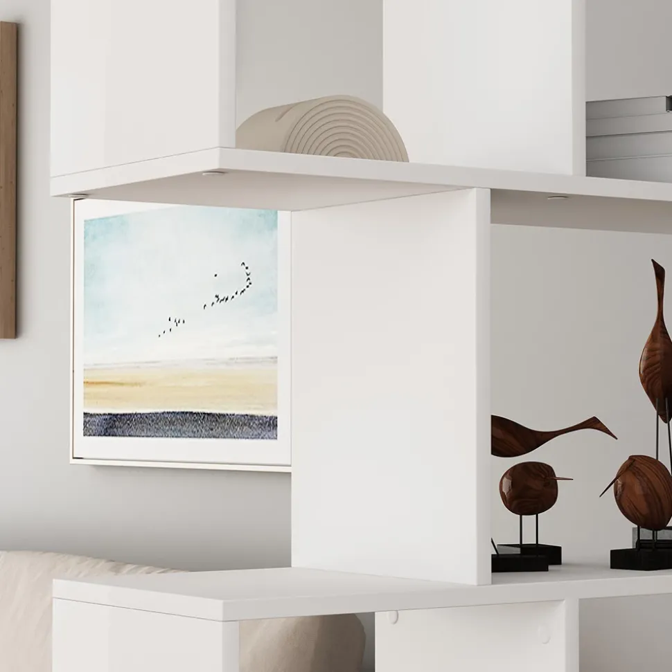 Mit den großen, offenen Ablagefächern bietet der Raumteiler großzügigen Platz zur Präsentation Ihrer Dekoration und Bücher. Die schlichte Optik und das moderne Design verleihen dem Raumteiler eine zeitgemäße Ästhetik. Die stabile Konstruktion gewährleistet eine sichere und langlebige Nutzung des Raumteilers. Dank der einfachen Montage lässt sich der Raumteiler schnell und unkompliziert aufbauen – ohne großen Aufwand. Dieses Möbelstück gehört zu unserer Aramis-Raumtrenner-Serie.