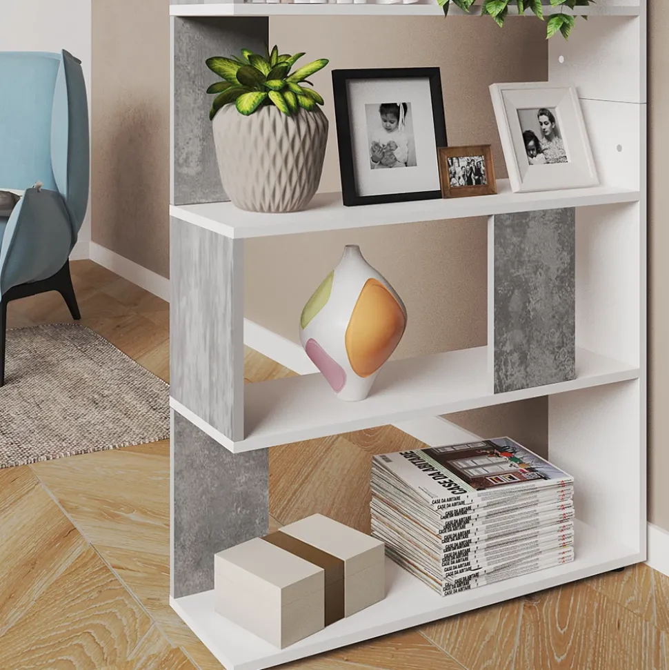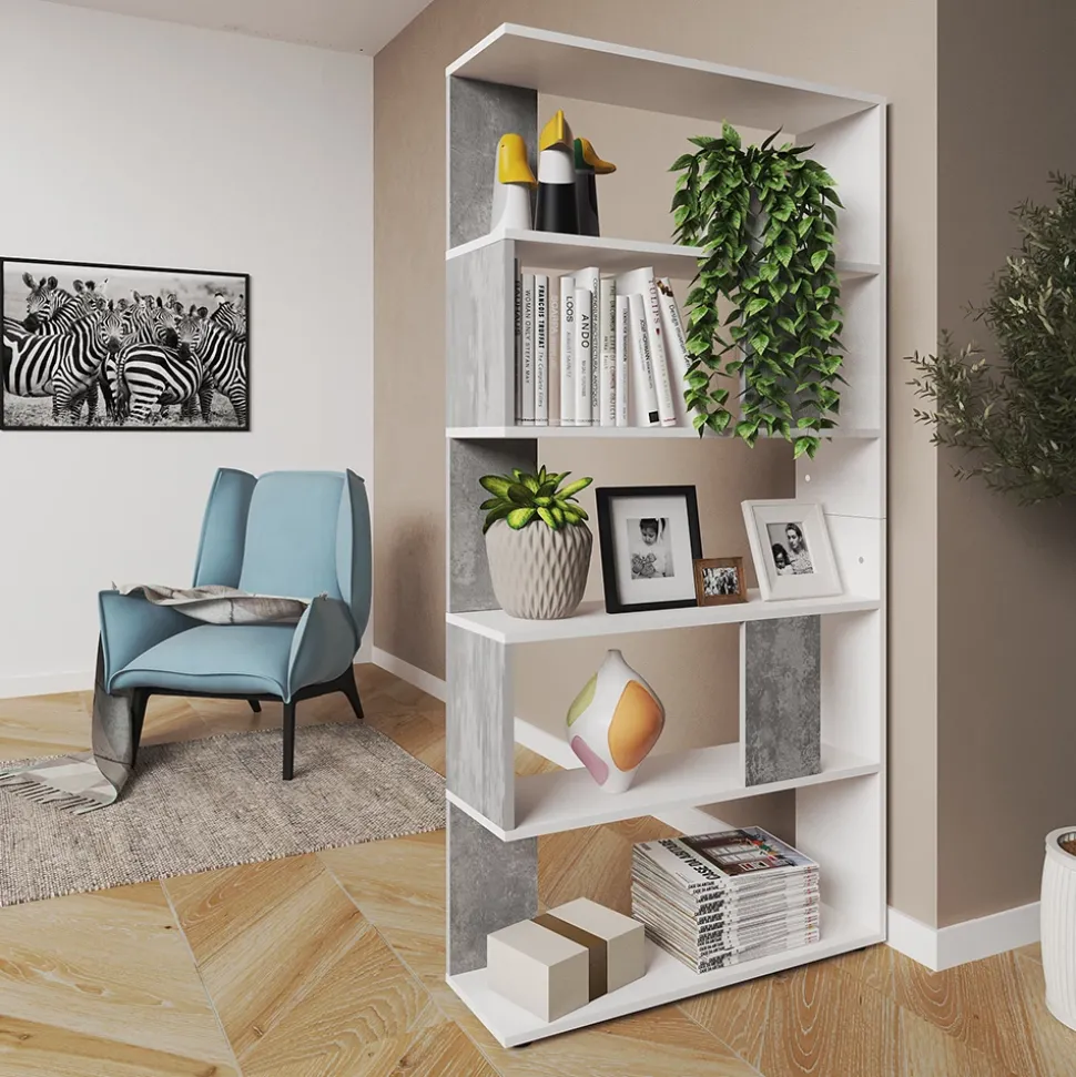 Dieser Raumteiler ist nicht nur funktional, sondern auch ein Hingucker in jedem Raum. Mit seinen 5 offenen Ablageflächen bietet er reichlich Stauraum und dient zugleich als raumtrennendes Element, um den Raum perfekt zu organisieren. Das Stufenregal eignet sich besonders gut als Bücherregal, um Ihre Lieblingsbücher und Gegenstände gekonnt in Szene zu setzen. Das funktionelle Design ermöglicht es, den Raumteiler gut mit anderen Möbelstücken zu kombinieren. Ob im Arbeitszimmer, Wohnzimmer oder Schlafzimmer – dieser offene Raumtrenner sorgt für ein harmonisches Ambiente. Entdecken Sie jetzt die Möglichkeiten und gestalten Sie Ihr Zuhause noch individueller.