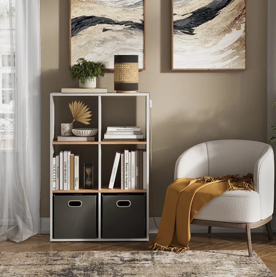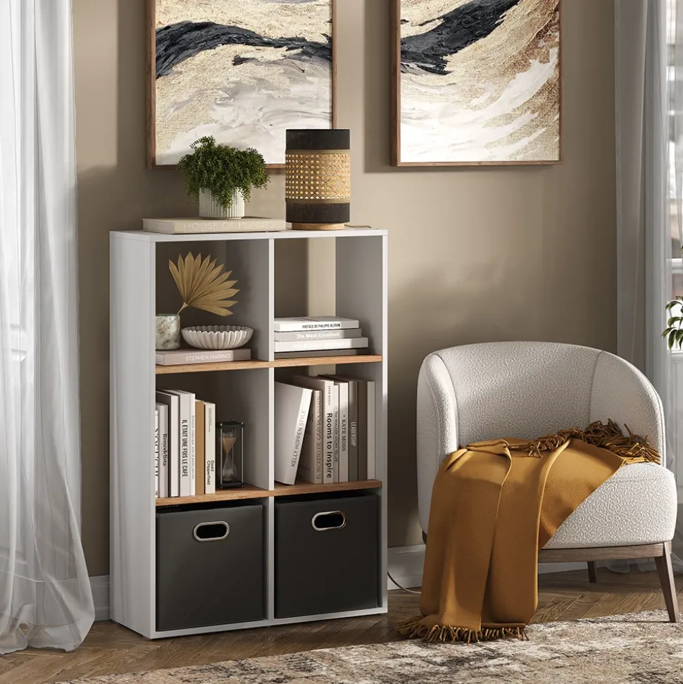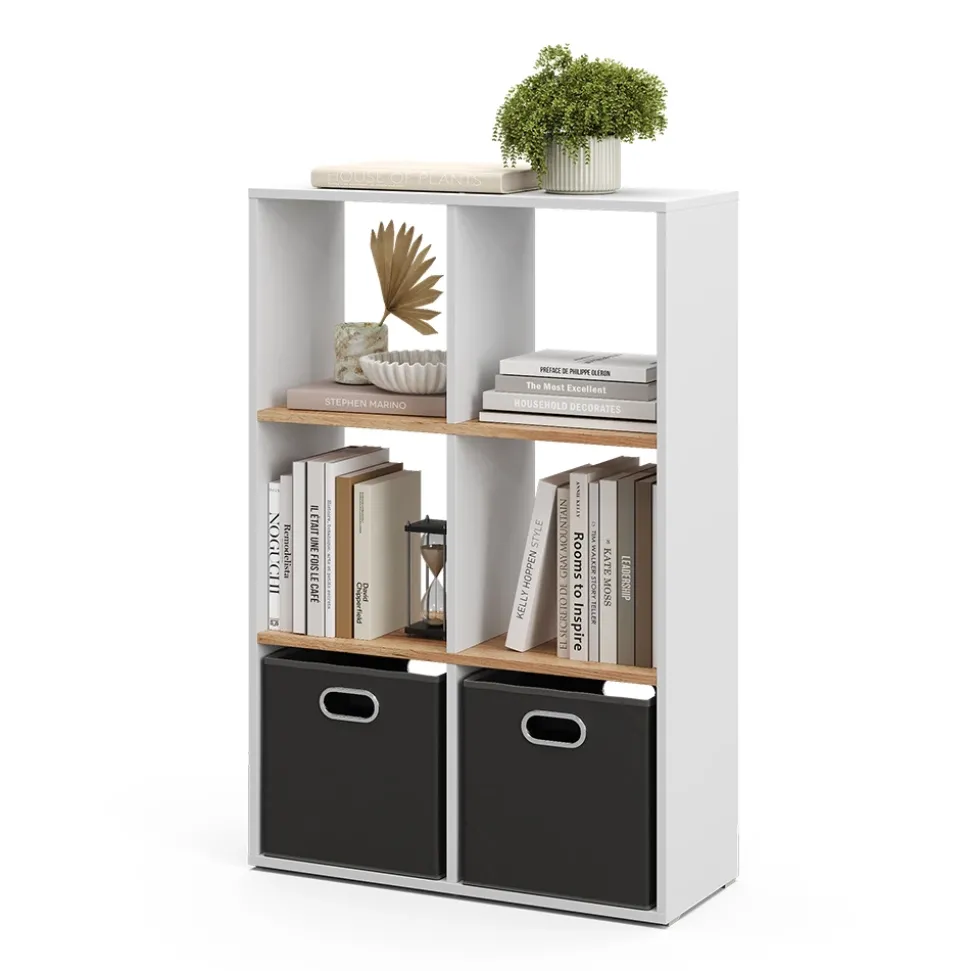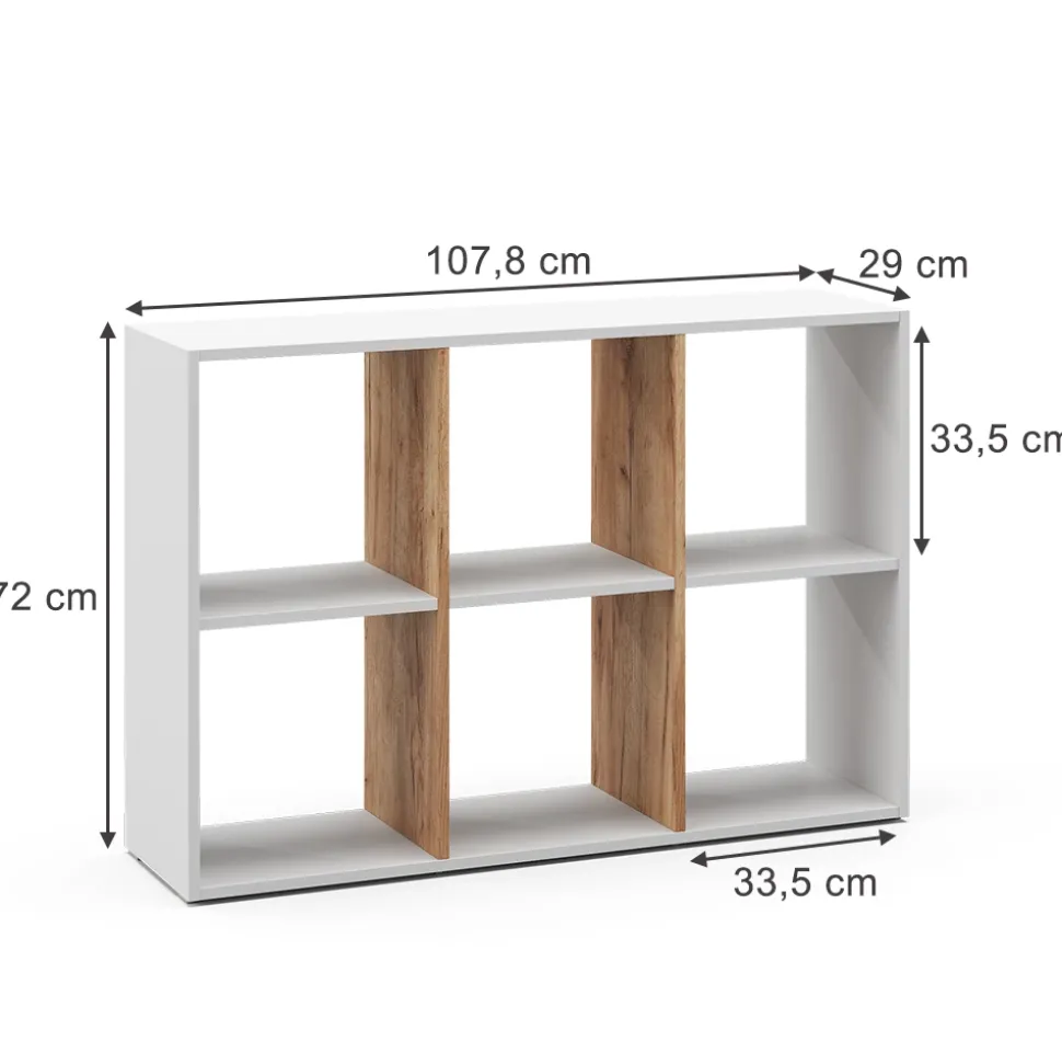 - Dieses stehende Bücherregal bietet 6 offene Ablagen und Fächer für 30×30 Kartons und sorgt somit für reichlich Stauraum.
